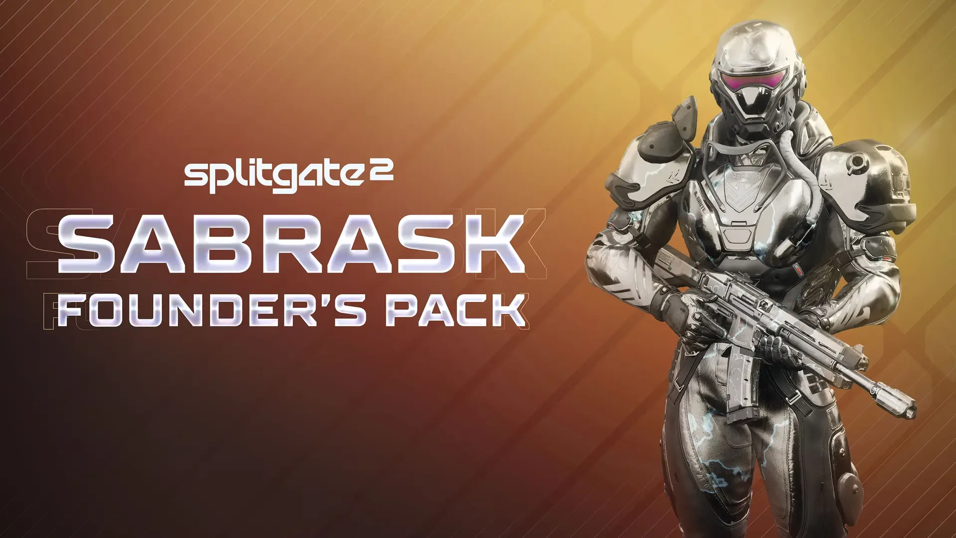 Sabrask Founder's Pack includes: - 2 Sabrask character skins - 3 Sabrask weapon skins - 1 emote - 1 banner - 1 charm - 1000 Splitcoin