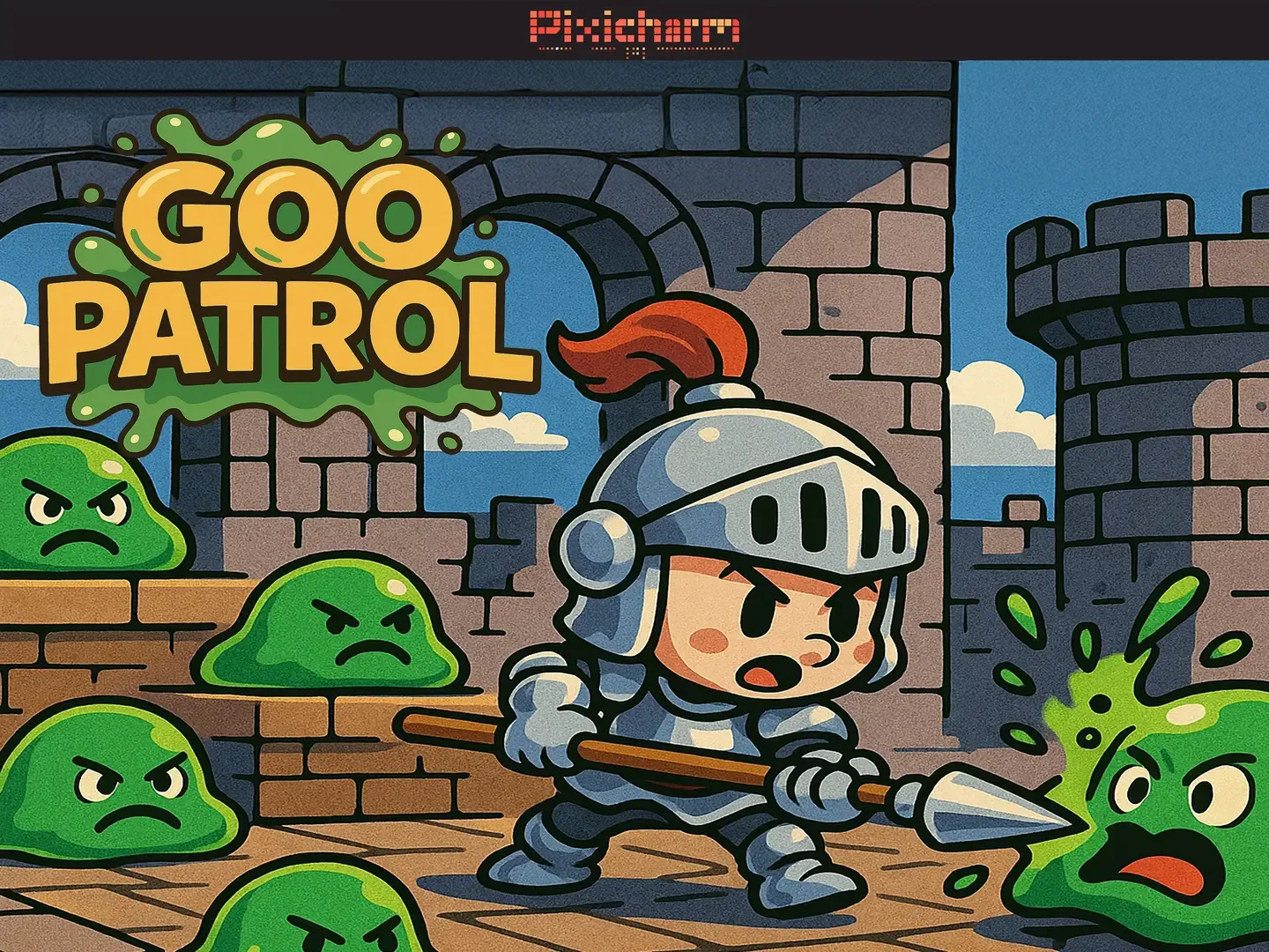 In Goo Patrol, you play as a fearless knight armed with a trusty pike. You can’t move, but you don’t need to. Slimes charge in from both sides across three platforms, and it’s up to you to switch lanes and strike at the right moment. Attack left, attack right, and survive the waves of gooey invaders. With simple controls, fast-paced levels, and nonstop arcade action, Goo Patrol delivers satisfying, slime-splatting fun in every round. Hold your ground. Clear the goo. Repeat.