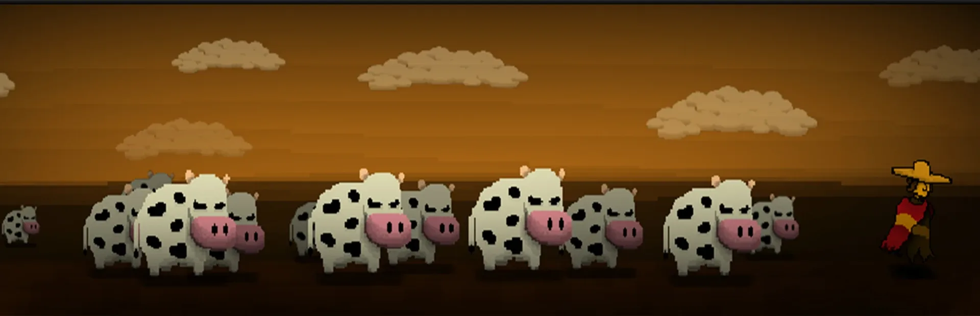 In "Vaca Bullet," you play as a cowboy in the Wild West defending your cows from bandits' bullets. The game is a tribute to classic Western movies, filled with shootouts and chases, brought to life through beautiful pixel art, giving it a raw and unique essence like a true western.