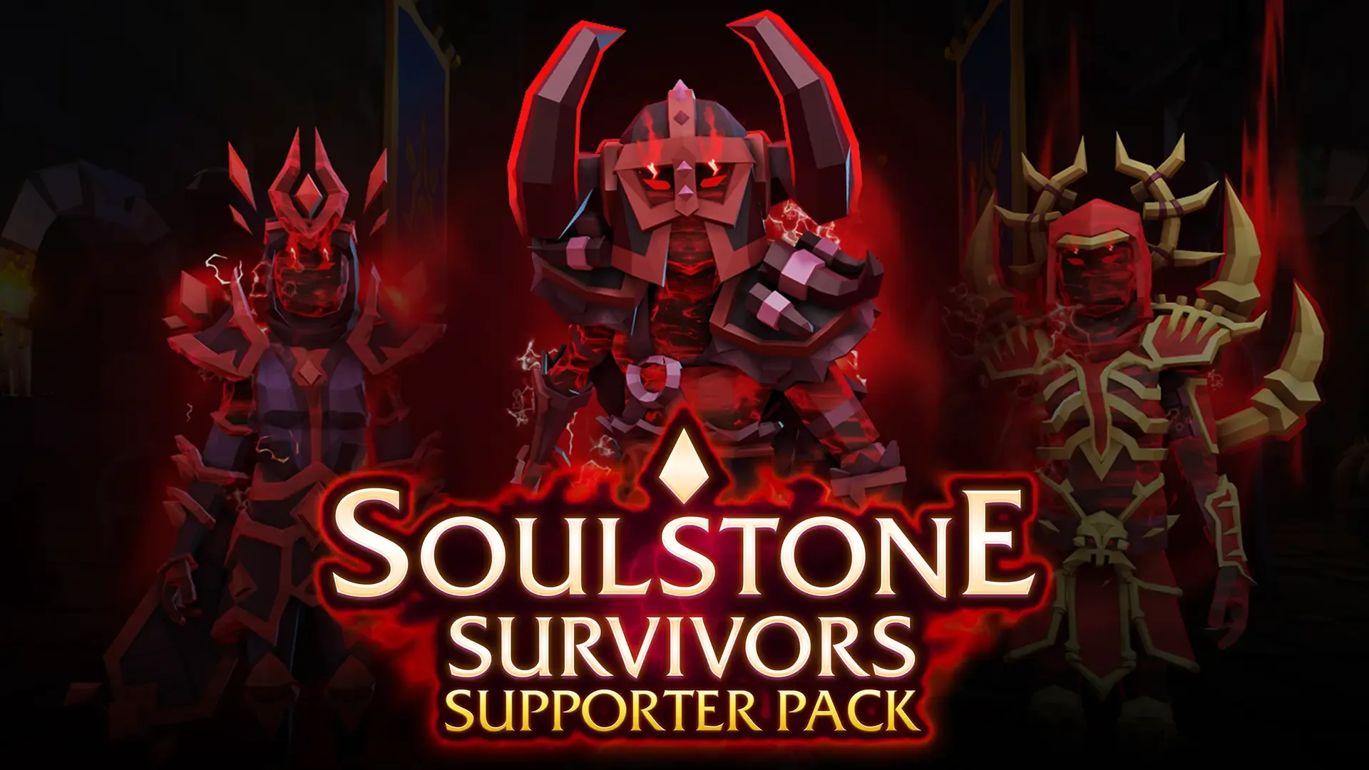 The Corrupted Supporter Pack unlocks twisted new skins for all 22 Void Hunters, revealing what they would become if they succumbed. By purchasing this DLC, you support the continued development of Soulstone Survivors. Thank you!