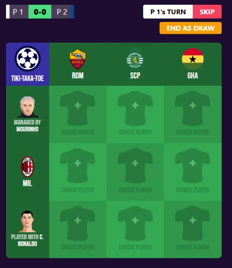 Test your football player knowledge and play Footy Tic Tac Toe online with your friends