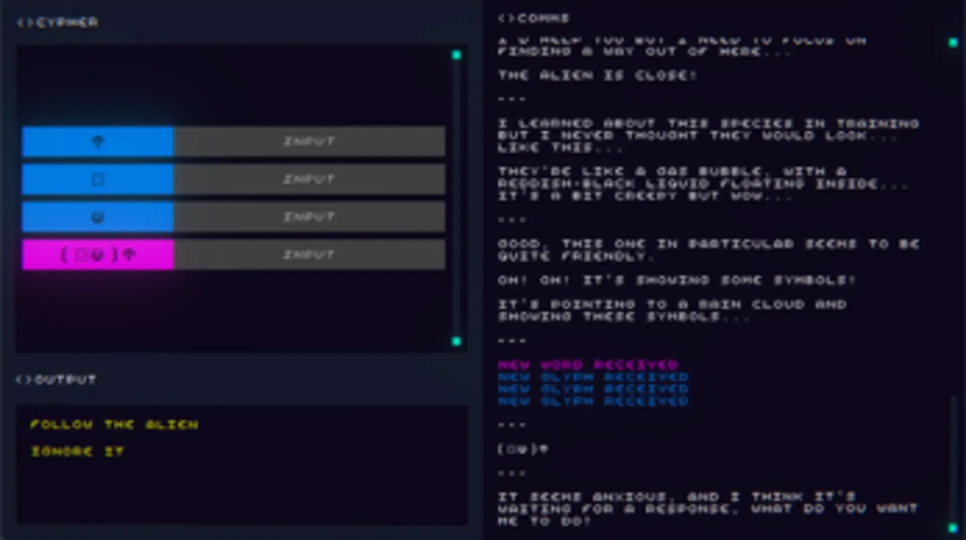 Help a lost astronaut interpret mysterious glyphs and understand an alien language by making your own cypher.