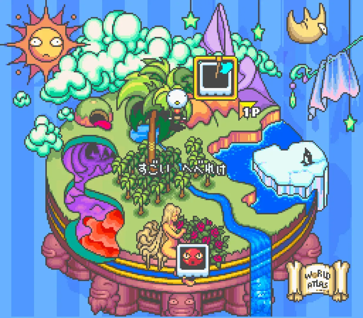Sugoi Hebereke is a 1994 fighting game developed and published by Sunsoft exclusively in Japan for the Super Famicom on March 11, 1994. It is a spin-off of the Hebereke series, as well as Sunsoft's first attempt in the genre before they became better known for the 1995 Galaxy Fight: Universal Warriors, the 1996 Waku Waku 7, and the 1998 Astra Super Stars. Sugoi Hebereke is Bird's Eye-viewed like Vectorbeam's 1979 arcade game Warrior, but with brawling elements similar to the ones found in Atari Games' 1990 Pit-Fighter arcade, Technōs Japan's 1992 Nekketsu Kakutō Densetsu, Namco's 1994 The Outfoxies, and Nintendo's 1999 Super Smash Bros. There are two play modes in the game: story mode and VS. mode. In VS. mode, up to four players can play as the cast of the Hebereke series simultaneously when using an SNES Multitap. The object of the game is to knock out (KO) the other three opponents. Each stage is square shaped and has its own environmental hazards and moving objects.