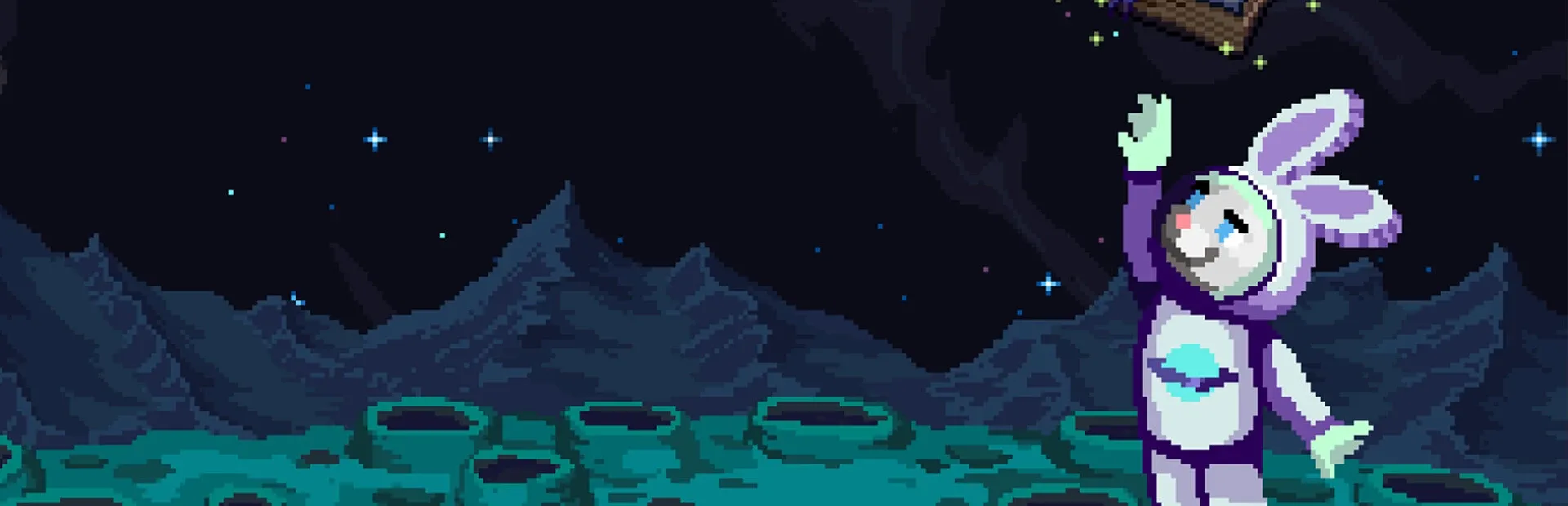 Embark on a pixel adventure with Ponchee the bunny in "Bunny Space Odyssey: FlopHop". Solve puzzles, protect plants, and uncover deep mysteries with Usagi-01 on an uninhabited planet.