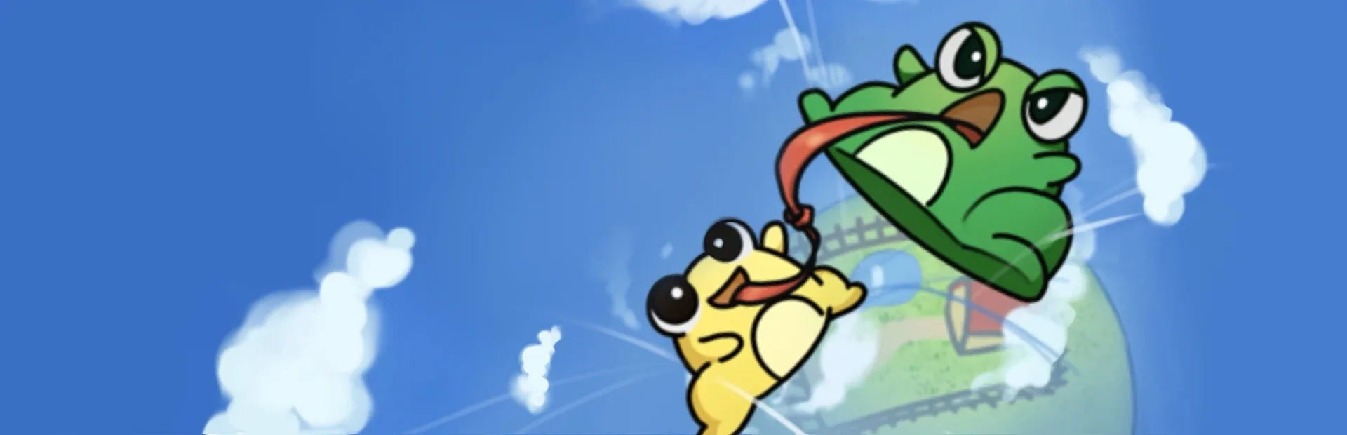 RIBBITS is voice-action cooperative platformer! Players control frogs that adjust their jump strength using the volume of their voices, and work together by connecting their tongues like ropes to overcome obstacles. Shout, cooperate, and team up with your friends to reach your goal!