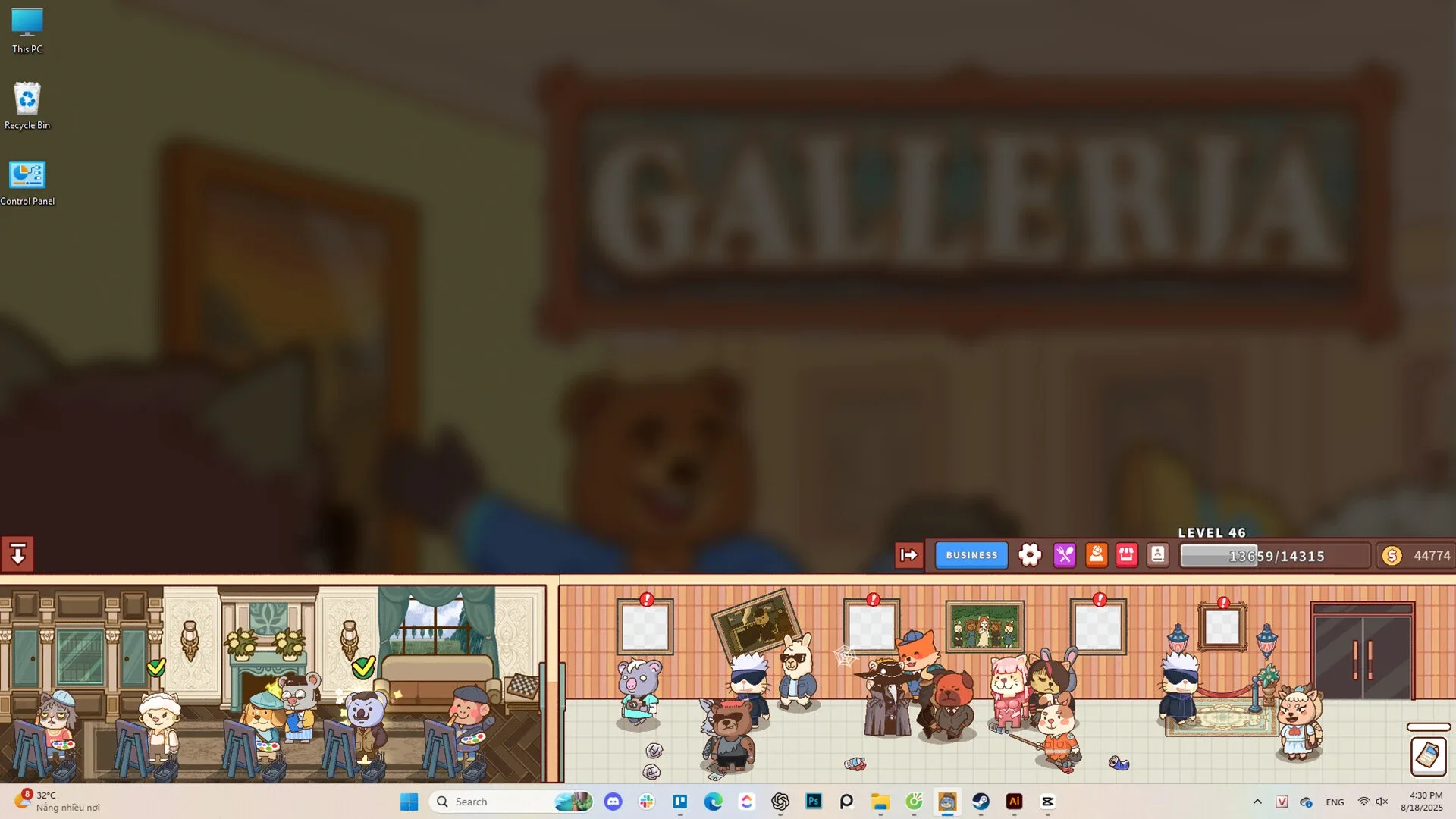 A compact art gallery simulator that runs quietly on your desktop while you work or study. Perfect for quick breaks, you'll hire artists, create paintings, and grow your gallery business without disturbing your workflow. Ideal for office workers and students.