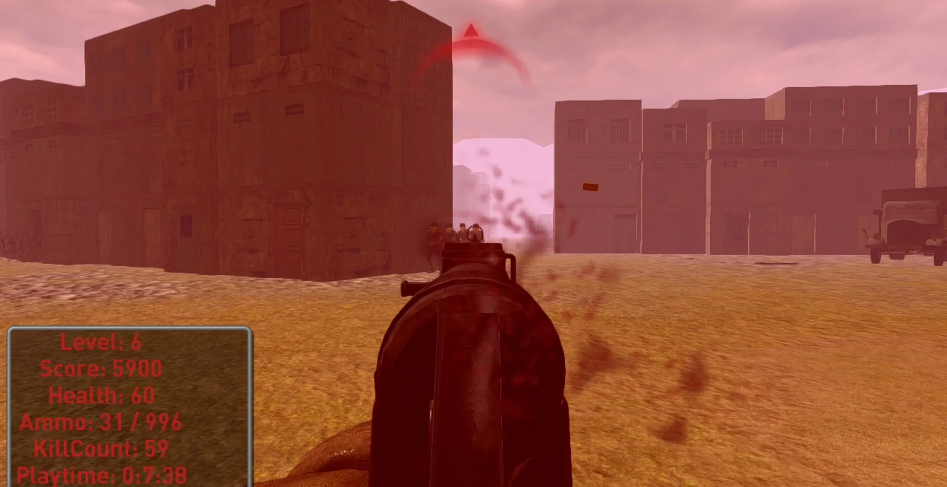 Gameplay: In Nazi your goal is to get kills for score. Find weapons, use them to get more score and raise your kill counter. As you get more kills, the town level will go up.. As the town level get's higher, more enemies will spawn and be harder to kill.