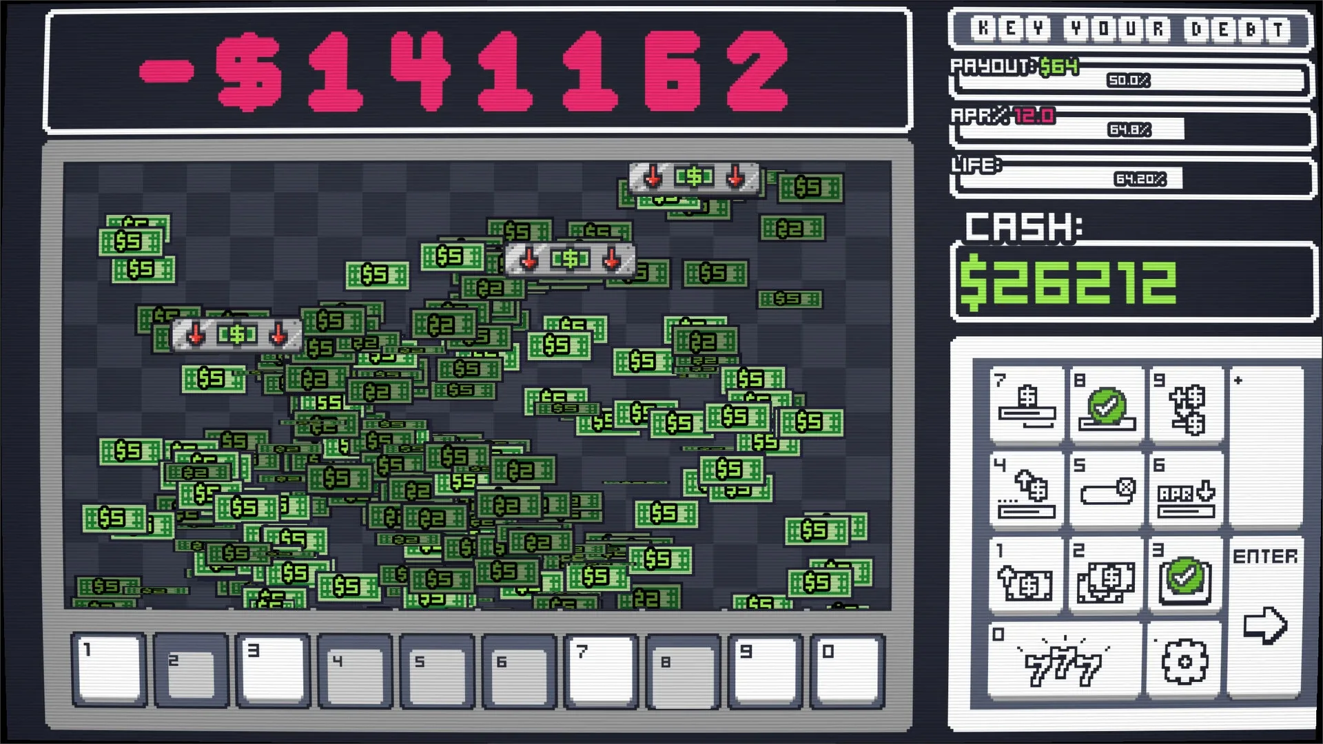 You have two things, debt and a number keypad. Use the number keys on your keyboard to pay your debt in this capitalistic clicker debt paying simulator.