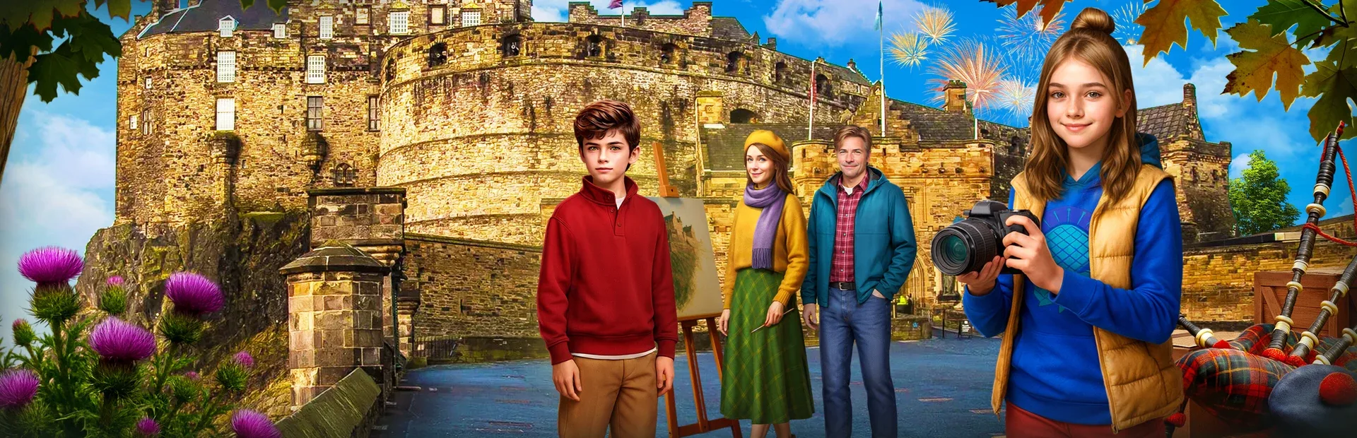 Join the Brooks on a vibrant puzzle journey through Edinburgh’s festivals—solve, explore, and capture the magic of Scotland!