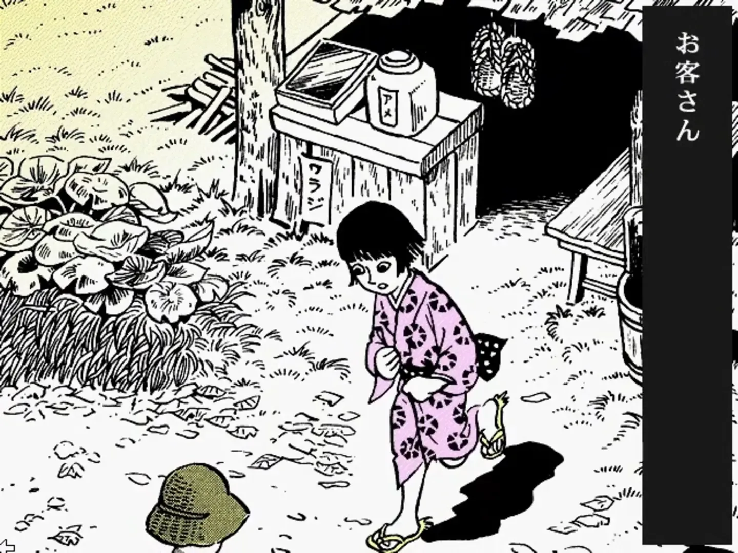 An interactive manga featuring art and story written by Yoshiharu Tsuge. It was released as part of a series of interactive manga called MangaRom.