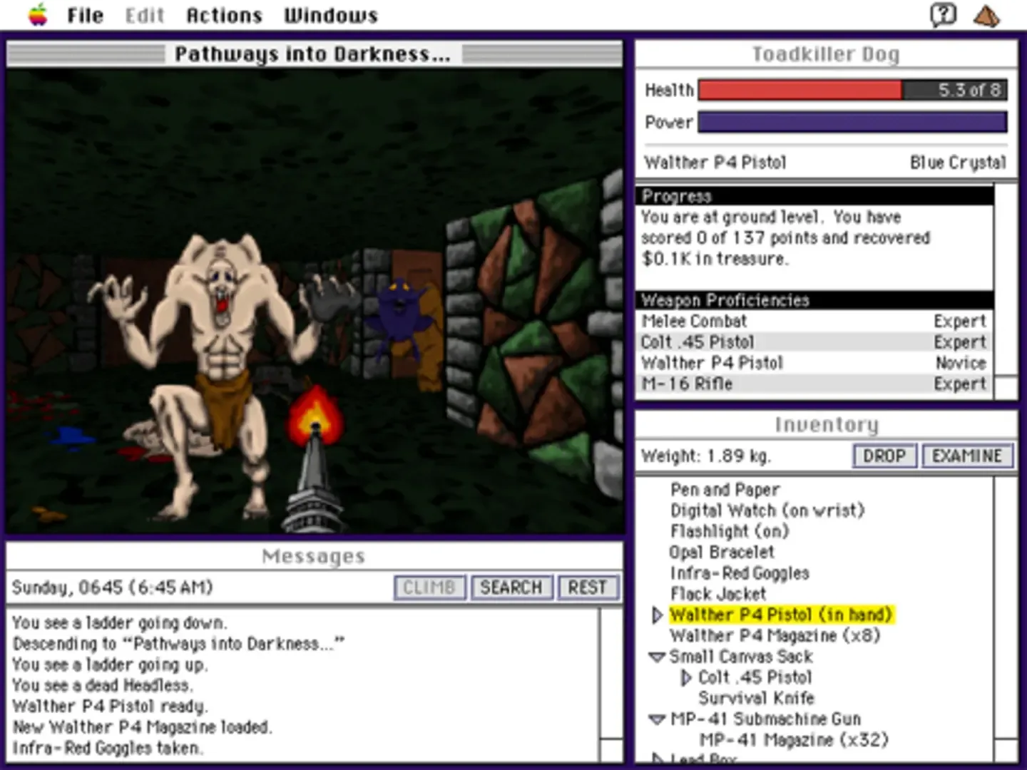 A first-person shooter paired with RPG elements with a few survival elements added in. You start exploring a pyramid after getting separated from the rest of your team.