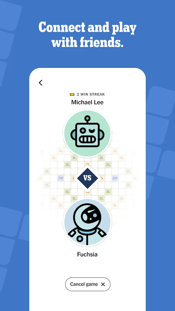 Go word-to-word. Challenge yourself or friends in this 2-player word board game Play with friends, compete and connect with Crossplay, a new 2-player word game from NYT Games that blends socializing and strategy. Play distraction-free, build words and use built-in tools to learn, improve and win, or simply enjoy the challenge.