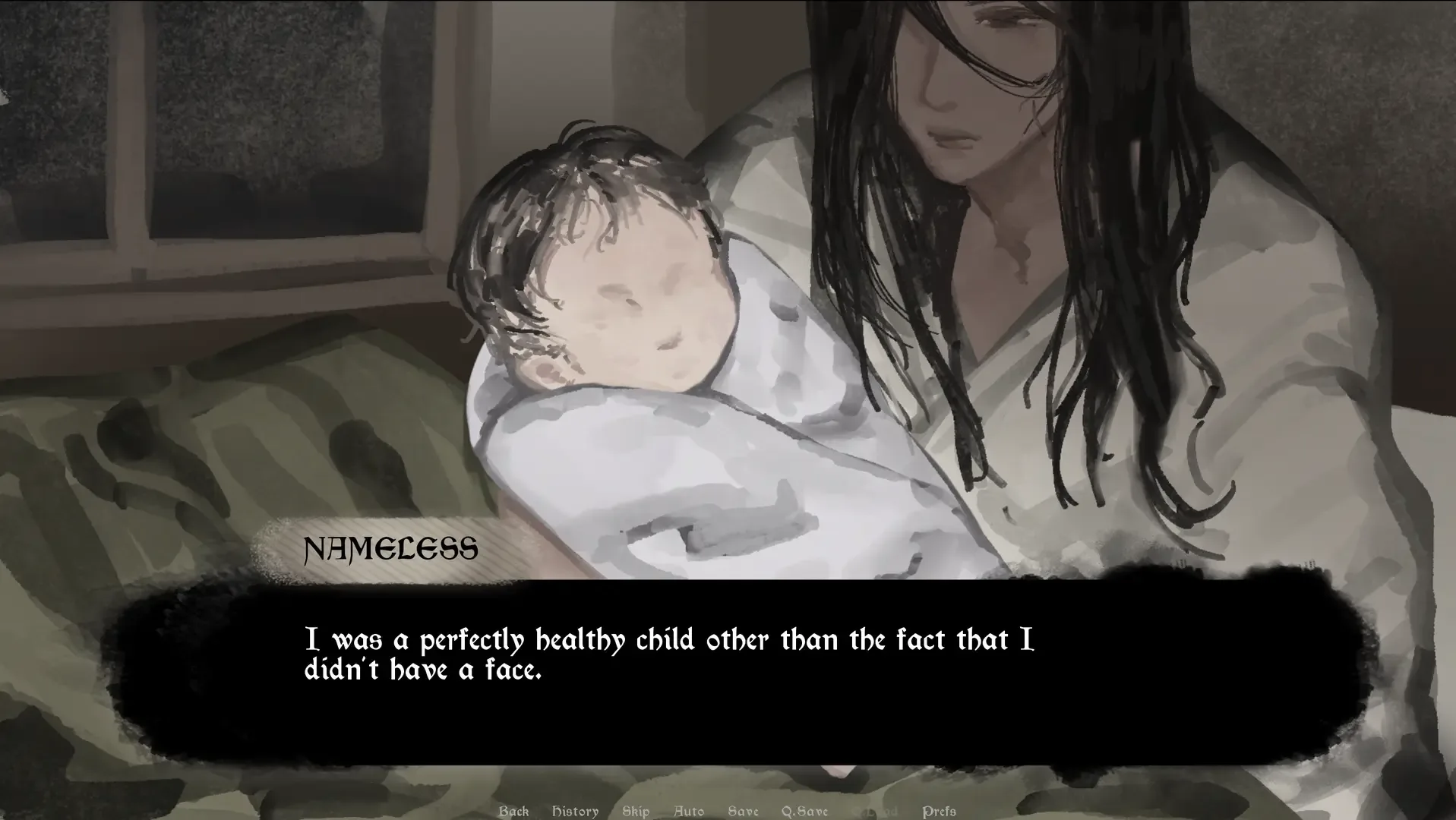 A horror visual novel about becoming. A girl, born without a face, survives by stealing the faces of others and wearing it as a mask. Explore settings to better understand the lives of the faces you steal.