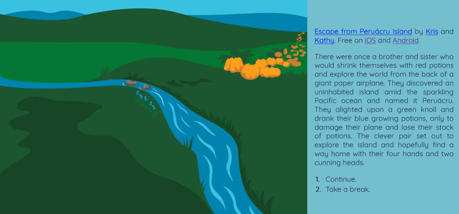 Escape from Peruácru Island is a short interactive adventure on a tropical island in a child’s imagination.