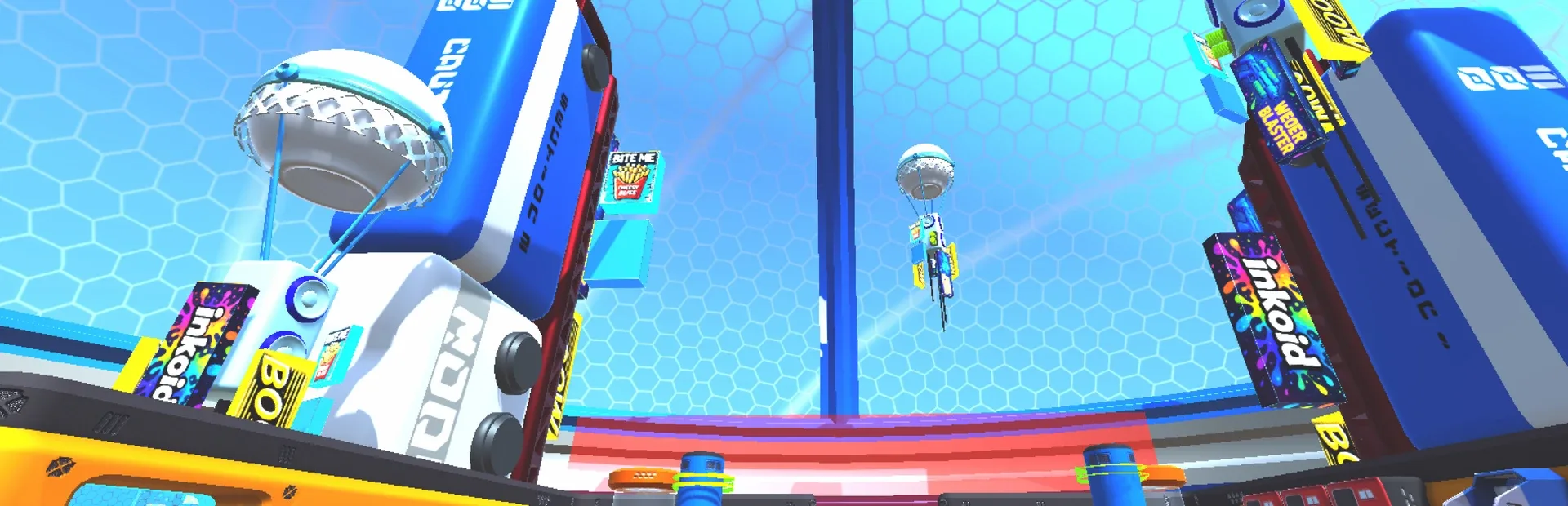 Rule the skies and paint the arena in your team's colors! Dive into the vibrant world of Inkoid, a 3v3 hyper aerial shooter where capturing airborne strongholds with your team is the key to victory.