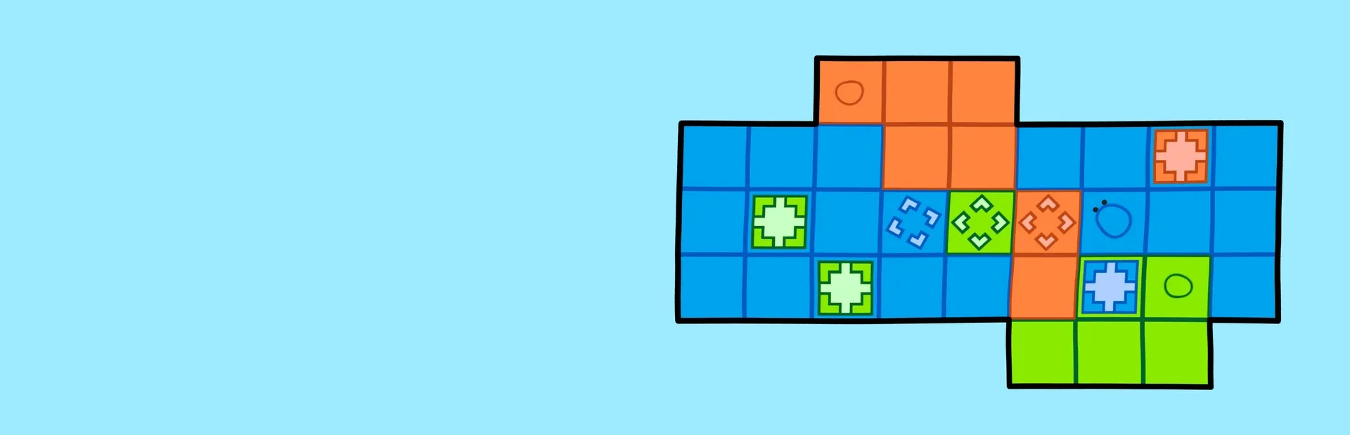Without crossing colors, move the blob characters around the field. By pushing boxes, have the blobs interact and together help them reach their goals.