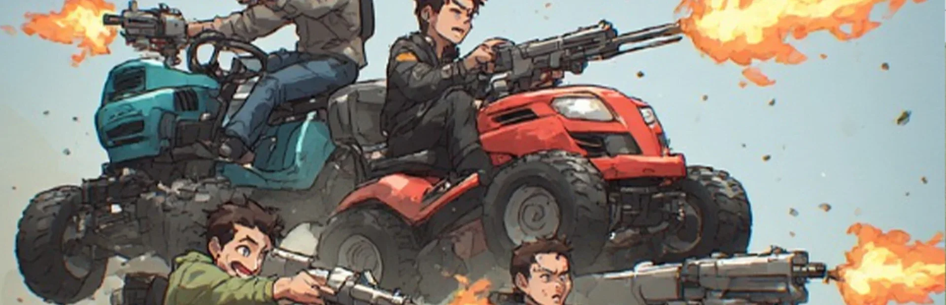 Arena lawnmower game. Collect weapons and shoot and destroy other ai lawnmowers. Survive enough long win battles and collect stars
