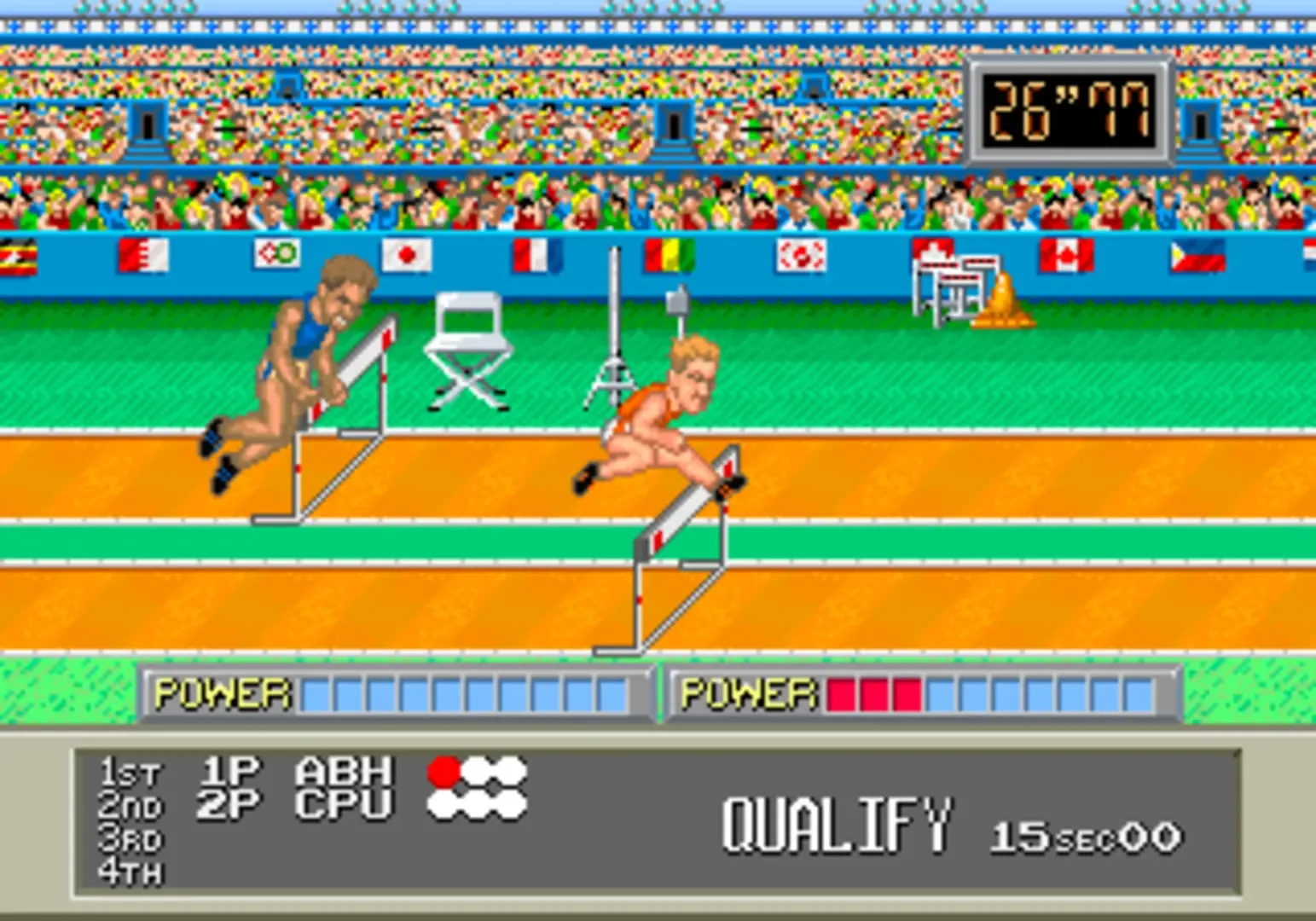 Konami '88 (also known as '88 Games or Hyper Sports Special) is the third in the Track & Field game series by Konami, where you test your Olympic skills against other world-class athletes. As the name implies, it is loosely based on (and not licensed by) the 1988 Summer Olympics in Seoul, South Korea. Bronze or silver medals are not good enough - you have to go for the gold to get to the next event. However, you must at least qualify in each event in order to compete in the next event.