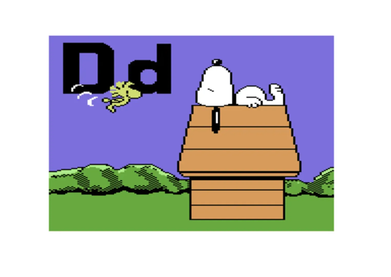 Charlie Brown's ABC's is a simple educational game designed for children ages 3-7. Featuring Charles Schulz's Peanuts characters, the game presents each of the 26 letters in the alphabet along with a brief animation to go along with it. Each animation has a different object that starts with the letter in question and one or more Peanuts characters interacting with it (such as Charlie Brown playing the guitar for the letter "G", or Snoopy dancing to music on the radio for "R"). Player's can select a letter and see the corresponding word and animation by pressing the letter on the keyboard, or the arrow keys can be used to cycle through each letter (forwards and backwards) in alphabetical order. The game package also included a set of activity cards which provided additional suggestions for parents or teachers to help kids learn the alphabet using the game.