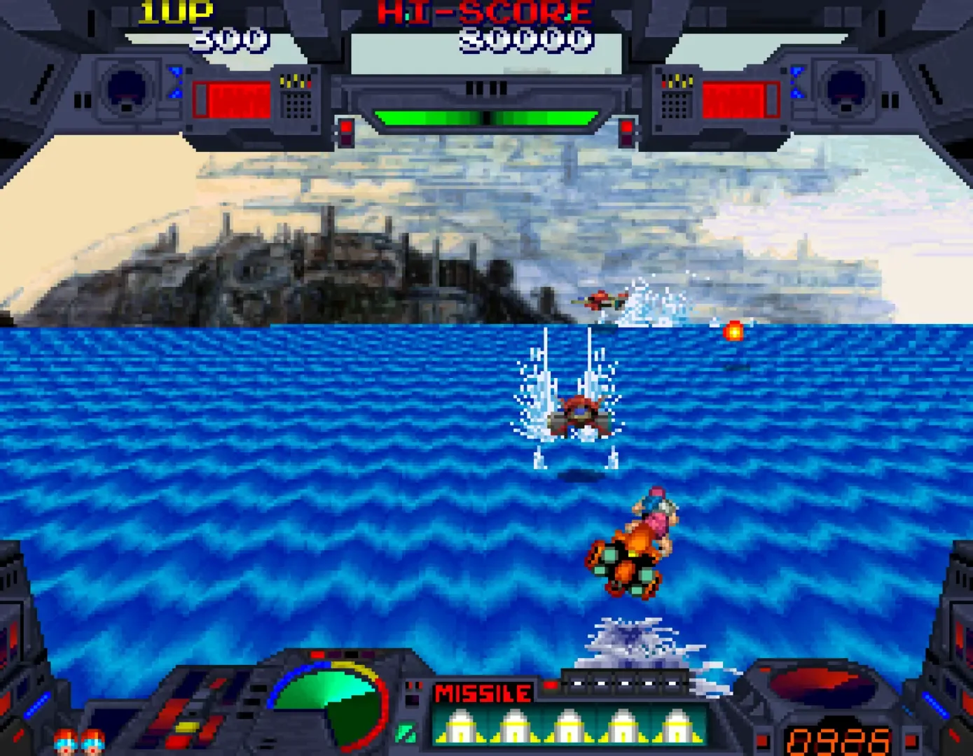 Burning Force is a 1989 third-person shooter arcade game developed and published by Namco. The game is notable for its extensive use of line scrolling to create the illusion of a three-dimensional playfield and for its lighthearted tone and synth-rock soundtrack.