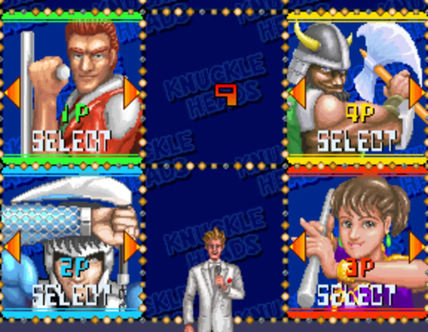 Up to four players must choose control for six different characters from: the United States, the game's home country of Japan, Greece, China, Norway, and Brazil in what is described as "America's hottest new game show" on the flyer; they all have different special weapons, moves, and catchphrases, and the show will move to each of the characters' respective home towns (Honolulu, Kyoto, Athens, Hong Kong, Lillehammer and Sao Paulo) for each successive round.