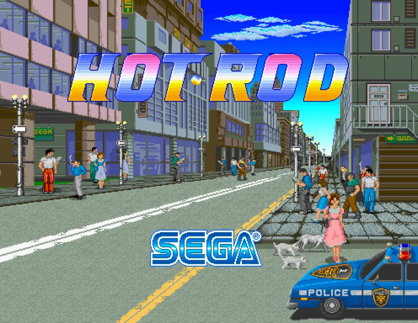 Hot Rod is a top-down arcade racing game developed by Sega. It allows up to four players simultaneously, and the player competes in races with three other cars. It is possible to upgrade the car at a Parts Shop. Every time a player falls off screen, they will be penalized by having gas subtracted from their gas meter. If the gas meter reaches "0", the game is over. The player can pick up flashing targets symbolized with a "G". By picking up the target, 20 units gas will be added to the player's gas meter. If the player successfully crosses the finish line, they will be rewarded additional units of gas.