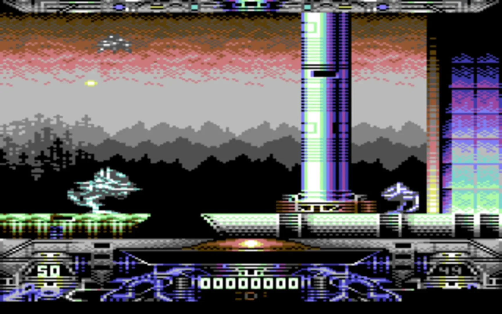 In Clystron you control a walker-like cyborg on its mission to find eight machine parts. The parts must be collected in the correct order. Whenever a part is found, a new transporter destination is unlocked. All parts must be found within a time limit of 15 minutes in order to complete the game. The game is a very basic platformer with rather weired controls. You can only shoot or jump while walking. Moreover, you keep walking in one direction until you press the joystick down, which feels very odd in the beginning and makes the game quite hard to play. Clystron was originally released for the C64 and later ported to the Commodore Amiga. Especially the C64 version was lauded for its great music and graphics.
