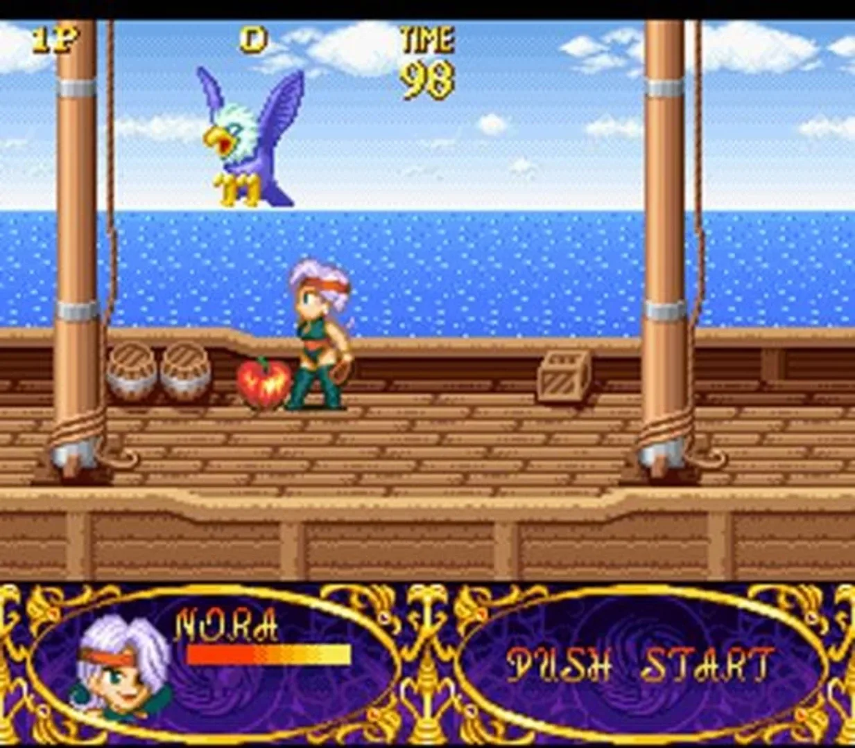 Melfand Stories is an side scrolling brawler with a cutesy fantasy theme. The player can use their weapons or their magic, or a combination thereof, to fight their way through various fantasy monsters and other enemies while finding items to help them out. The game has four playable characters and allows for up to two players to play simultaneously. The characters include the youthful hero El, the brash swordsman Corse, the elven mage Lemin and the whip-wielding rogue Nora.