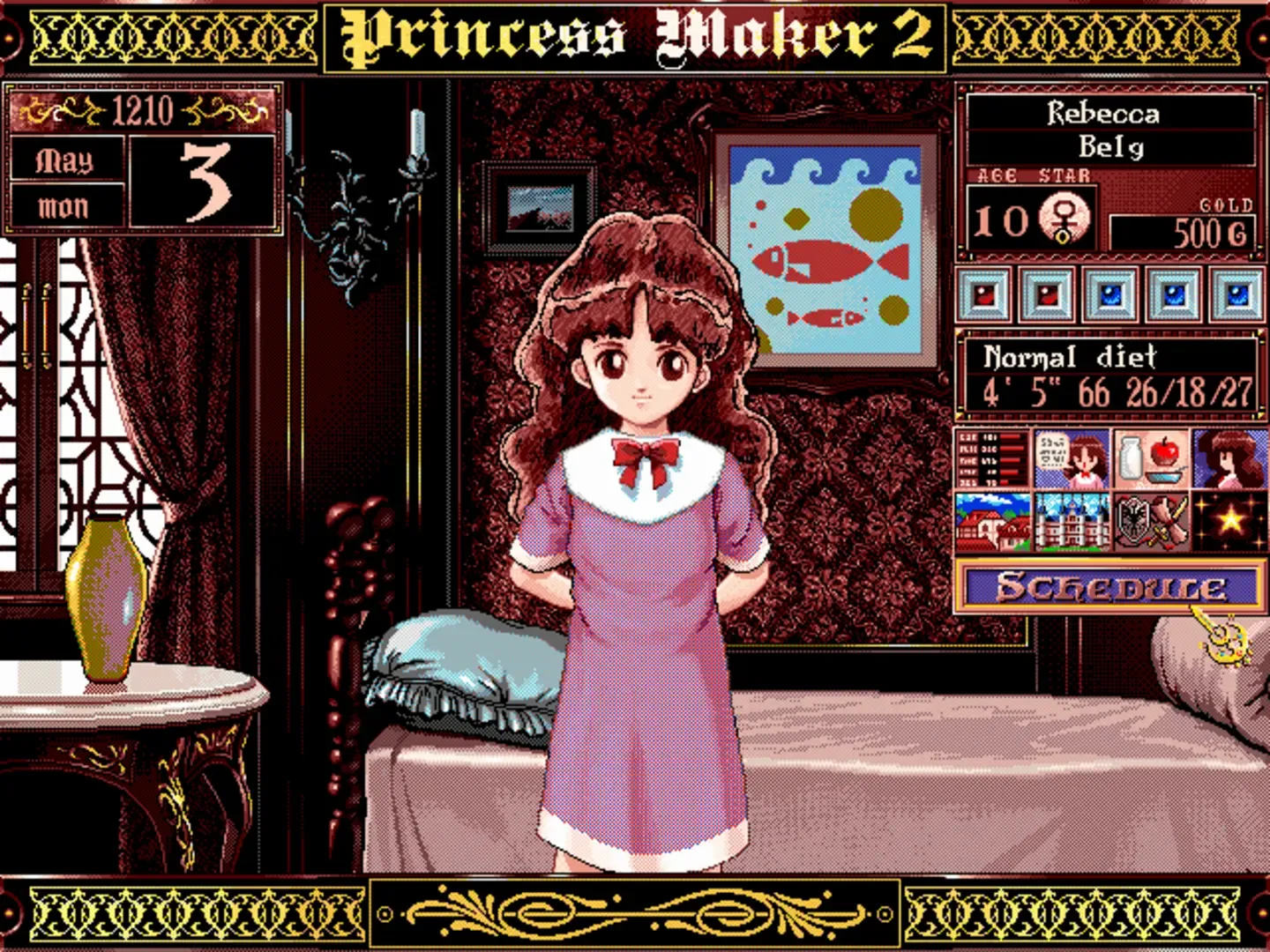 In this fantasy game, the player takes role of a war hero who raises a girl to the age of 18. At the end of the game, the daughter goes into a line of work; what this work is, how much talent she has for it, her marital life, and her overall happiness all depend on the player's actions.