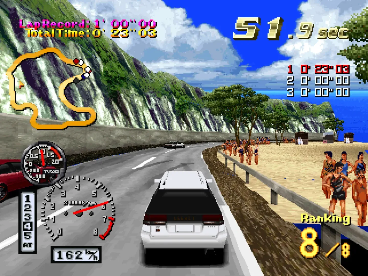 Side By Side is an arcade racing game series from Taito that focuses on touge and drifting. The series started in 1996 in the arcades and was followed next year by a sequel. Also in 1997 a PS1 port was released, called Side By Side Special, a remix that combined the two arcade games into one. Side by Side Special 2000 features different cars, dual shock support and even more features.