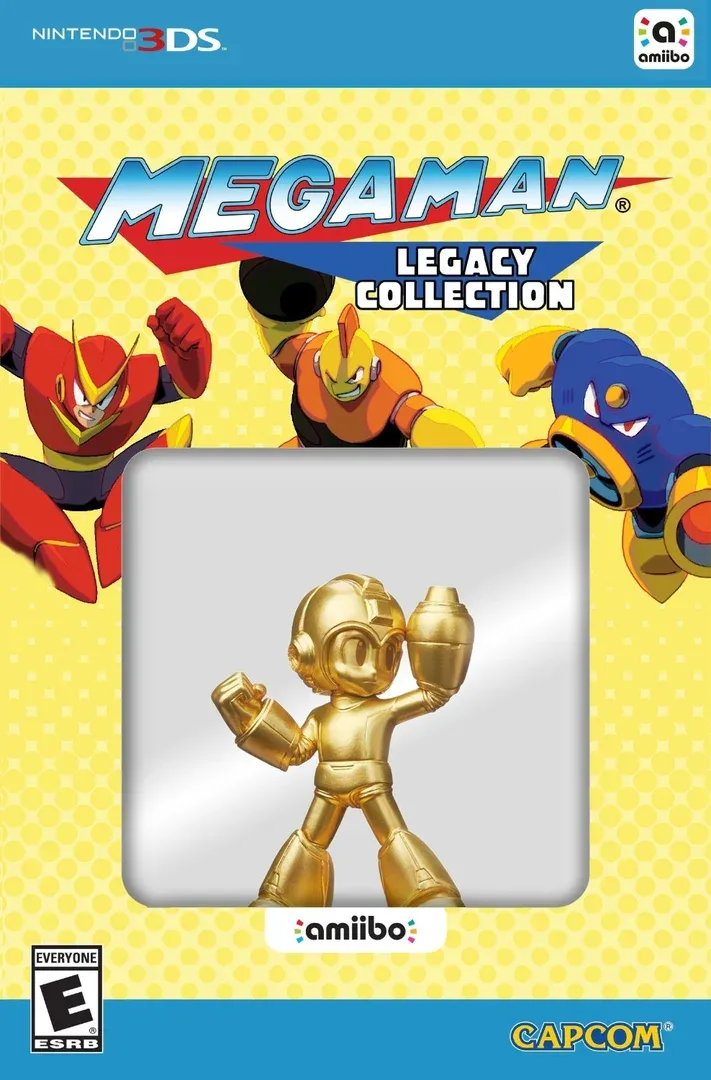 Mega Man Legacy Collection is a celebration of 8-bit history. Featuring faithful reproductions of the series' origins with the original six Mega Man games, the Legacy Collection will remind long-time fans and introduce newcomers to what made Mega Man such a popular and iconic character. Mega Man Legacy Collection will feature all six games and much more. In addition to the six Mega Man games, Mega Man Legacy Collection features new ways to experience the classic games with the Museum Mode and new Challenge Mode. Challenge Mode remixes gameplay segments from all six games, with plenty of scaling difficulty objectives for experienced players to conquer yet serving as a good starting point for new players, too. Museum Mode contains a comprehensive collection of history, high-res art and original concept pieces – a mega treat for any fan of Mega Man and video game history. Collectors Edition includes two Nintendo 3DS Mega Man themes, 18-song sample compilation soundtrack, four Mega Man stickers, six Mega Man postcards and exclusive gold Mega Man amiibo Figure. The physical 3DS release also has a limited version titled Collector's Edition (Limited Edition in Japan). The North American version contains a golden Mega Man amiibo and six postcards, while the Japanese version includes a Wily Numbers cover jacket, a Rockman notebook with research journal entries by Dr. Light, five pixelated sticky tags, a large box and two download codes for 3DS themes.