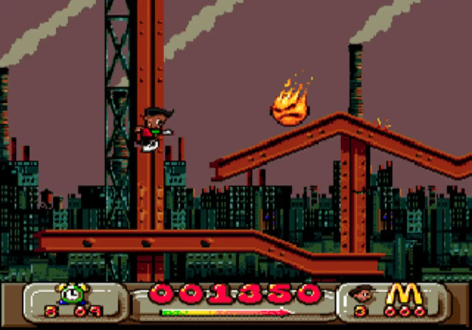 Global Gladiators is a platform game licensed from fast food chain McDonalds. While playing through the game's 12 levels you'll notice McDonalds logos, burgers and all sorts of family restaurant type stuff as you take Mick and Mack (the game's protagonists) on a journey to clean up "Monsters of Slime World", "Toxi-Town" and more.