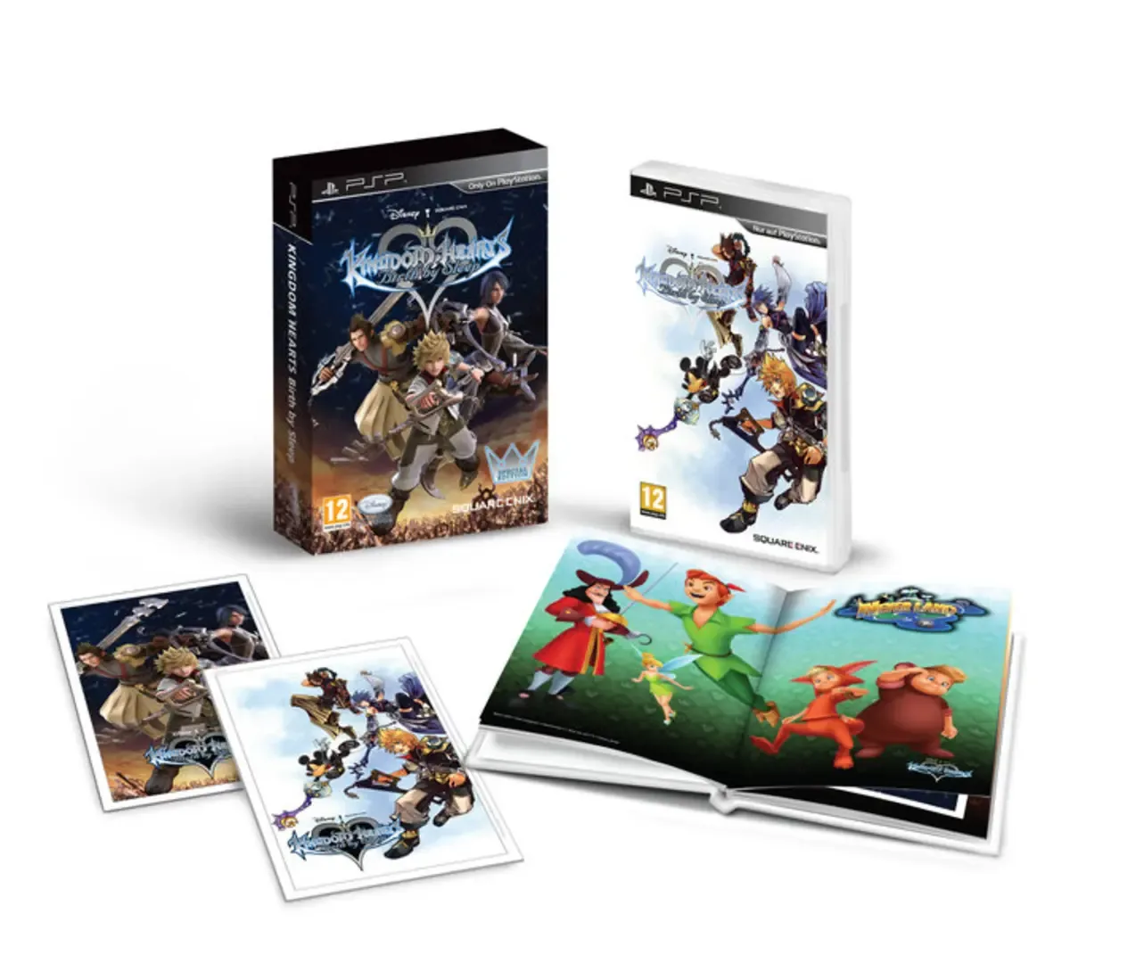 As well as a copy of the game for PSP, there are two exclusive items that you’ll also get in this version: Two KINGDOM HEARTS Birth by Sleep art prints. A 48-page hardback artwork book entitled “The Art of KINGDOM HEARTS Birth by Sleep”. The Special Edition was distributed in UK, France, Germany/Austria/Switzerland, Nordic countries, Benelux, Spain, Italy, Australia/New Zealand, Russia, Portugal, Greece and Cyprus.