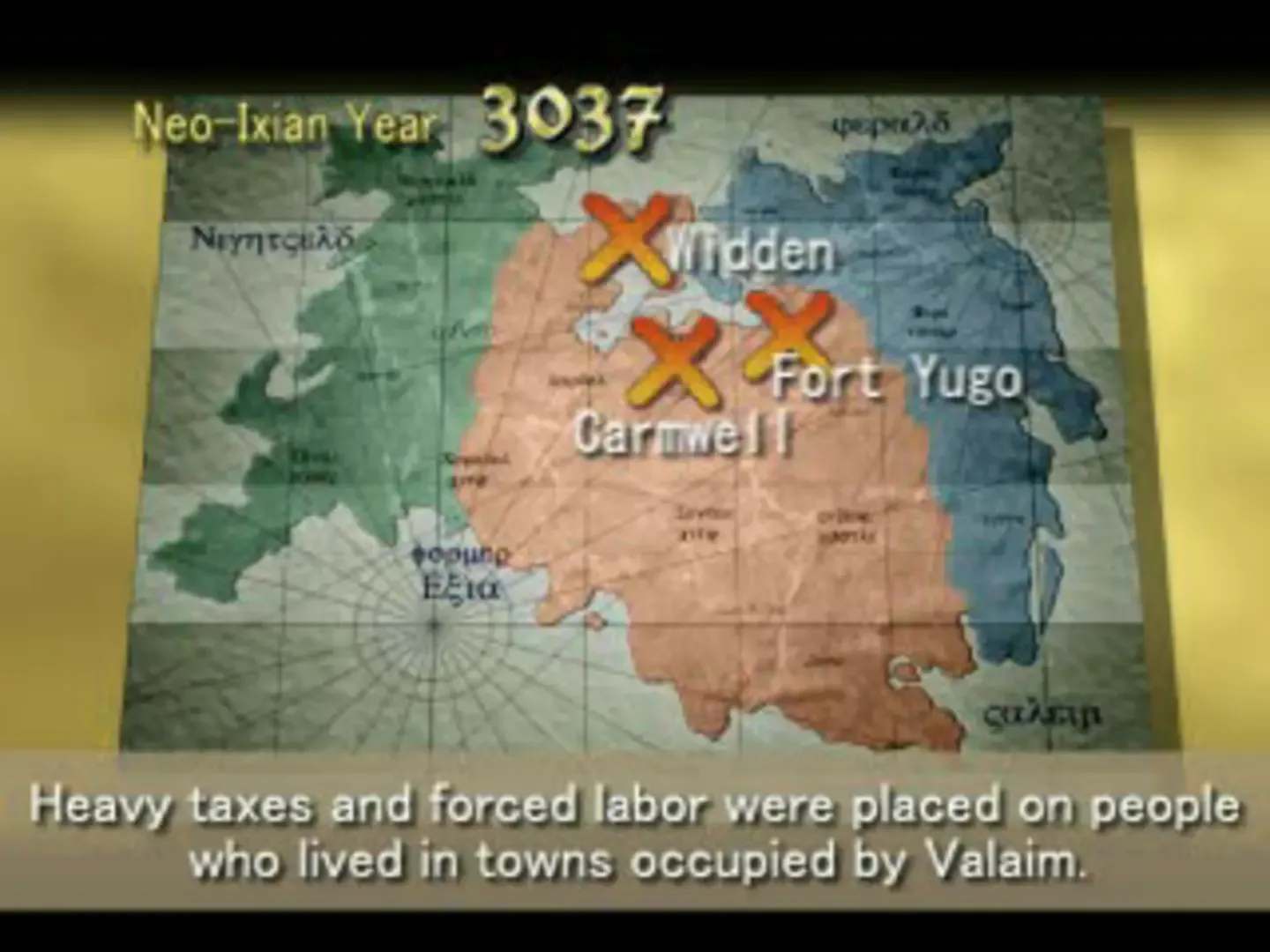 Utilizing a host of new gameplay elements, Hoshigami: Ruining Blue Earth expands upon the formula made popular by the cult classic Final Fantasy Tactics. The continent of Mardias serves as the game's primary world, and is divided into three kingdoms: Nightweld, the Valaimian Empire and Gerauld. The story begins as Valaimian troops advance into Nightweld, a peace-loving kingdom. Lacking the military might to repel the invaders from multiple fronts, Fazz - a mercenary and the game's protagonist - is hired to defend the Tower of Wind. Needless to say, this is just the beginning of a dire and perilous journey for the unwitting Fazz. As you and your party trek across the world map, you'll take part in various battles. Ready-for-Action Points (RAP) determine which, as well as the number of actions that can be performed by a particular character. The more actions performed (and thus, more RAPs expended) during a turn, the longer you'll have to wait for your next chance to act. When attacking, an interactive gauge appears that does damage based upon where the slider is stopped. Stopping it at the very end will result in greater damage dealt to the enemy. Wait too long however and the slider will return to the beginning.