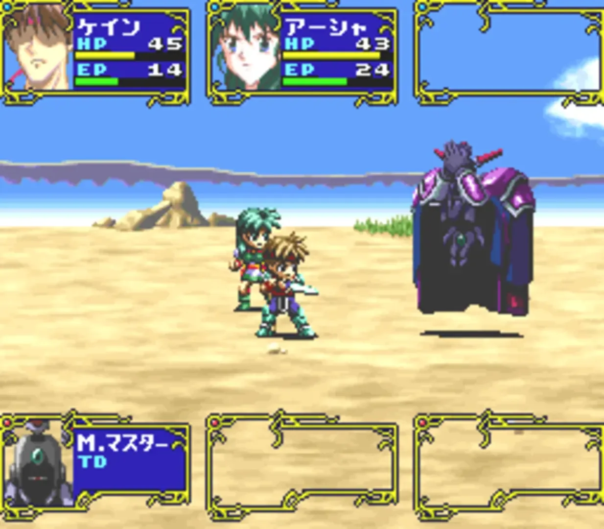 The world of Blue Breaker is called "the path in the middle of empty sky": floating islands connected with each other by bridges. It is the tradition of the people in this world that a fighter's full initiation can be completed only when he finds his true love and marries her. Such day has come now in the life of a young warrior named Kain, the hero of the game. His father explains to him that besides the usual warrior's goal of defeating the evil Dark Lord, Kain also has to find the girl of his dreams. He introduces to him a young sorceress named Asha, who becomes his first companion. But on his journey Kain meets many other young women, and it won't be so easy to choose one to whom he can give his heart! Labeled as Love Role-Playing, "Blue Breaker" is a genre-crossing game that combines traditional Japanese RPG with town and dungeon exploration, party-based combat, etc., with "love adventure", in which your behavior towards girls influences the story. "Blue Breaker" features branching story progressing: events appear depending on the progress you have made with your female companions. Your typical RPG activities will influence your relationship with the girls. For example, if you fight too much, the girls will be tired; if you give a girl too many orders in battle (you can set battle in auto mode and only interfere occasionally) she will be displeased, and so on. It is also important to form a party in which the girls will have as few internal conflicts with each other as possible.