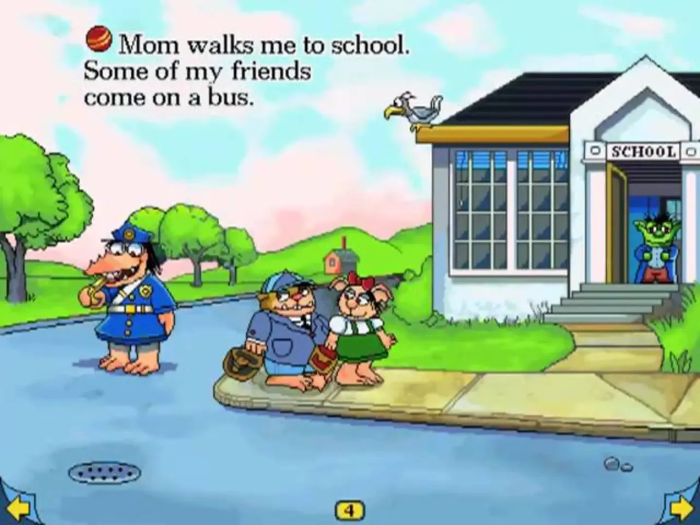Little Monster at School is an interactive story game, based on the book by Mercer Mayer. Little Monster explains how school is fun and things to do in school, along with trying to help a monster kid named Yally get along with school. On the pages after the first part of the story is read to the player. Objects in the background may be clicked to reveal hidden surprises. While playing, click on some of background objects and find a little furry mutant.