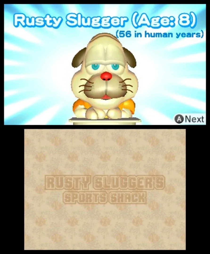 A baseball-themed mini-game collection for 3DS eShop. Players can haggle with the shopkeeper to reduce actual real money prices on the games available in this free to play title. The game is a localization of Darumeshi Sports Store, replacing Darumeshi for Rusty.