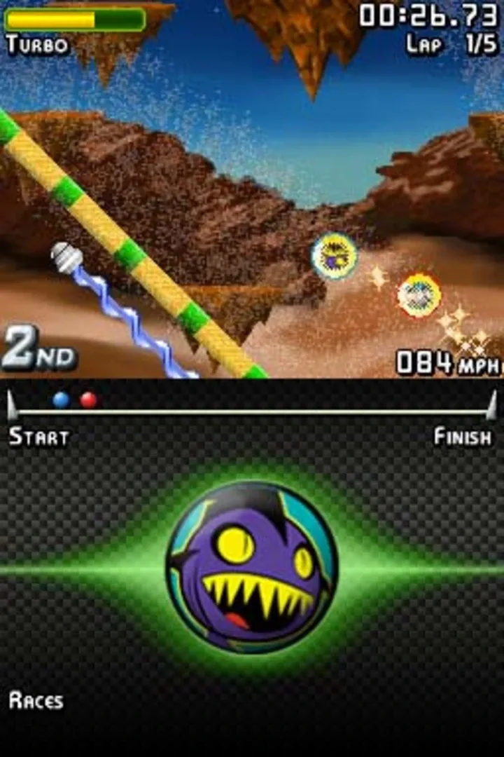 GameMill Entertainment brings the exciting world of DaGeDar to the gaming market via the Nintendo DS in time for the 2011 holiday season. Each DaGeDar holds a unique “spirit within” that offers advantage to the player during each race. Using sharp reflexes players do battle in a game of speed and skill as they race their DaGeDar ball to the end of a virtual raceway. Each raceway is composed lanes that loop, drop, climb and bank - but also contain blocks, and gaps that will knock the player off their game. 100 basic DaGeDar balls to unlock and choose from. Each ball carries abilities of Acceleration, Top Speed, Defense and Attack. Single or Multi-Player game play. 2 balls are in play at a time. 50 fast and furious raceways. Typical race time is 2-3 min.