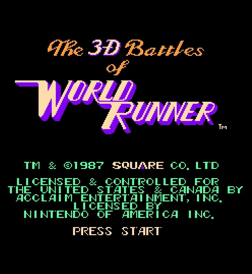 The battle of a lifetime comes alive in 3-D! The wildest of the space cowboys is out looking for adventure. Now he's got it and he needs your help. A strange world terrorized by Grax, the Alien Serpentbeast, has asked you, Worldrunner, for help. Knowing you can outrun, outjump and outblast anyone or anything, you race into battle. But this is no ordinary fight. These battles will carry you to eight strange planets filled with bottomless pits, shooting stars, and poisonous aliens, all sworn to defend their Serpent King. And each new world is ruled by an Alien Serpentbeast more terrifying and more powerful than anything you've ever seen before. Are you ready, Worldrunner? They're waiting for you!