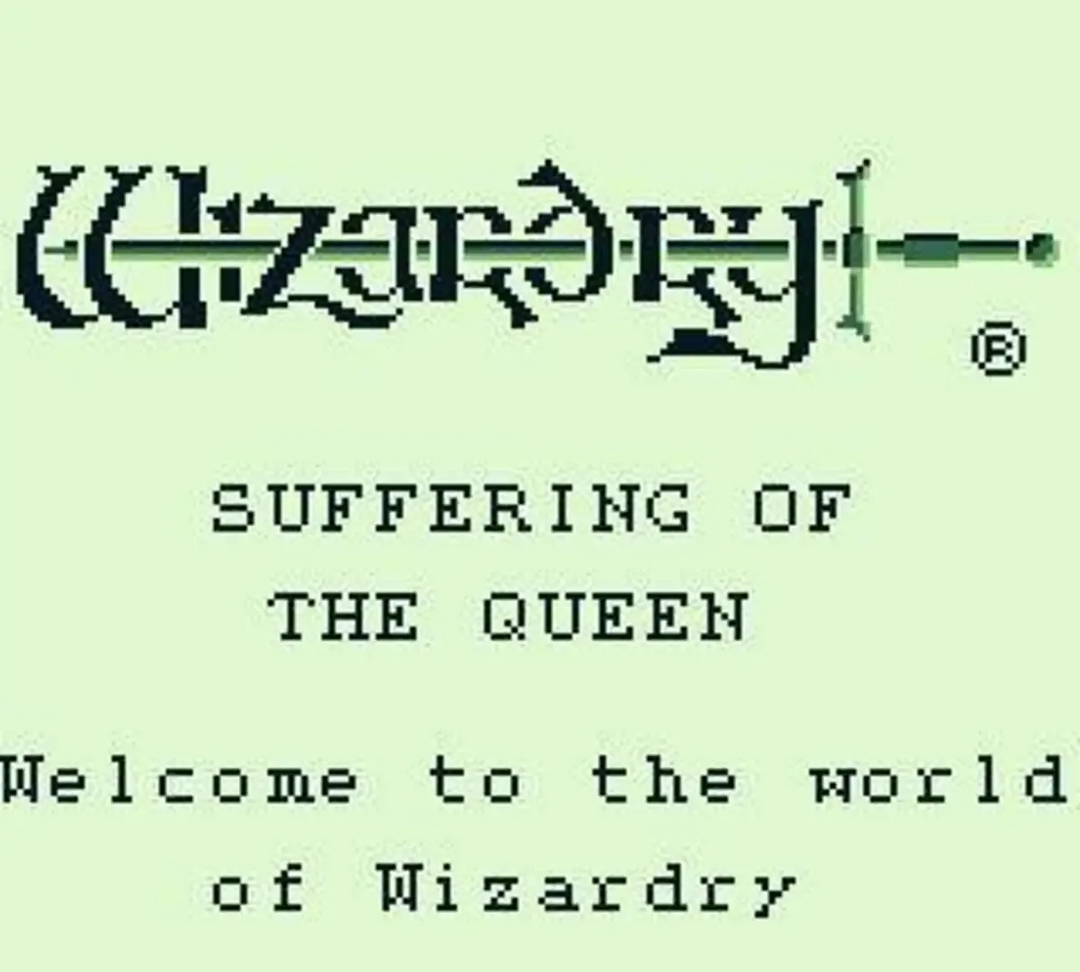 Wizardry Gaiden I: Suffering of the Queen published in 1991 by ASCII, was the first of the trilogy of Wizardry roleplaying games released for the original gray-scale Nintendo Gameboy portable video game system.