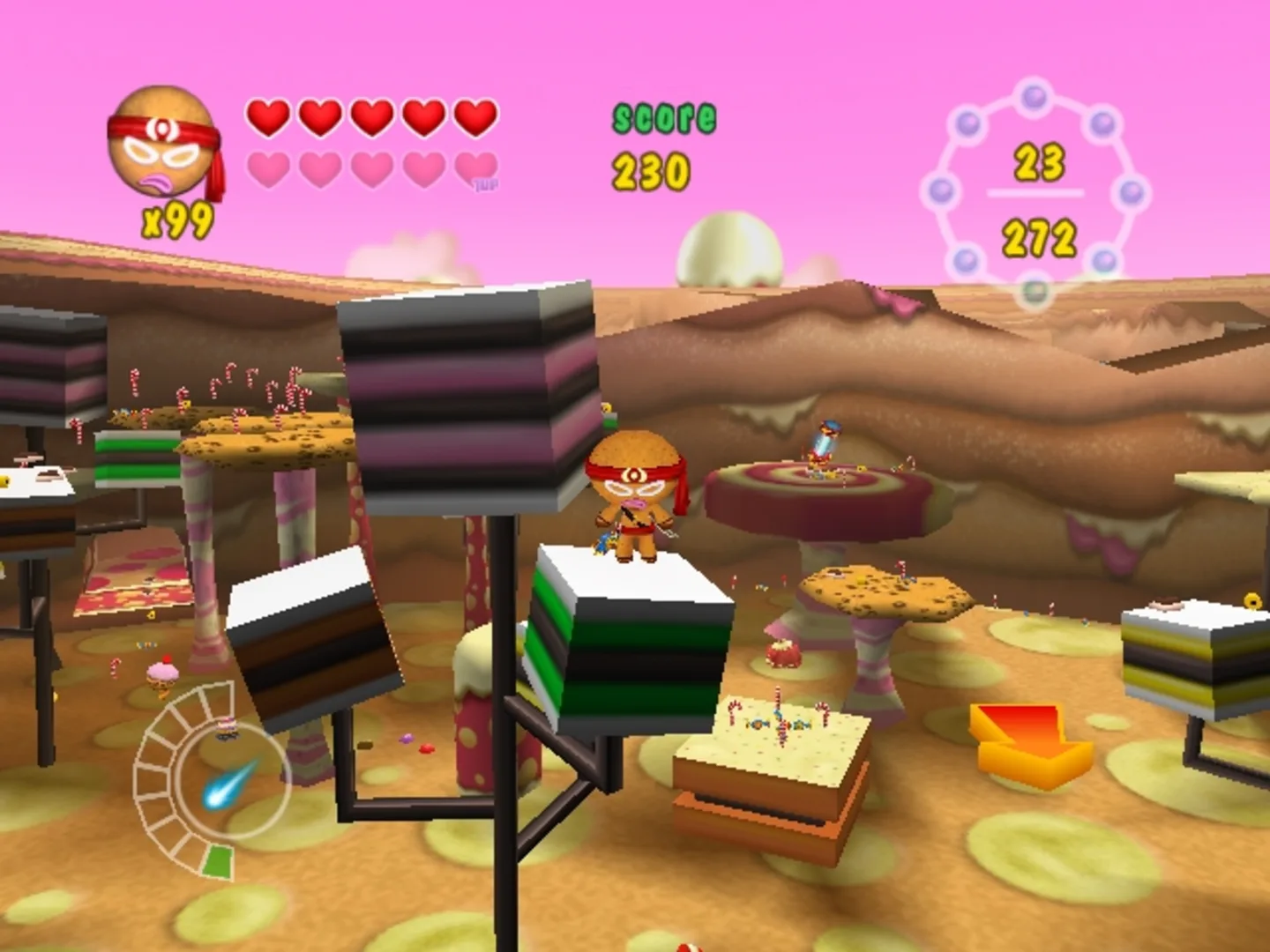 Candy Land is under attack! Hordes of snapping cupcakes, angry bees, and jelly monsters have taken over this once sweet & tasty land. Only one man can stop this evil army of monster cakes. He's one tough cookie, a guy who won't crumble under the pressure... Ninjabread Man is here! Throw ninja stars to stun enemies and then follow up with Ninjabread Man's mighty samurai sword, reducing enemies into a quivering pool of raspberry jam. Collect power ups to increase the power and range of Ninjabread Man's weapons and use ninja skills to jump onto high ledges, dash past enemies, and find the magic candies! Can the Ninjabread Man save the day? Candy Land's future depends on you!
