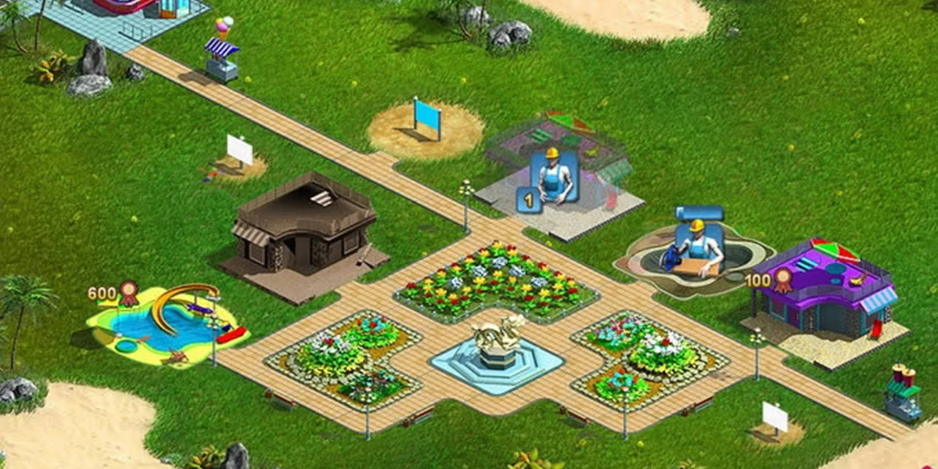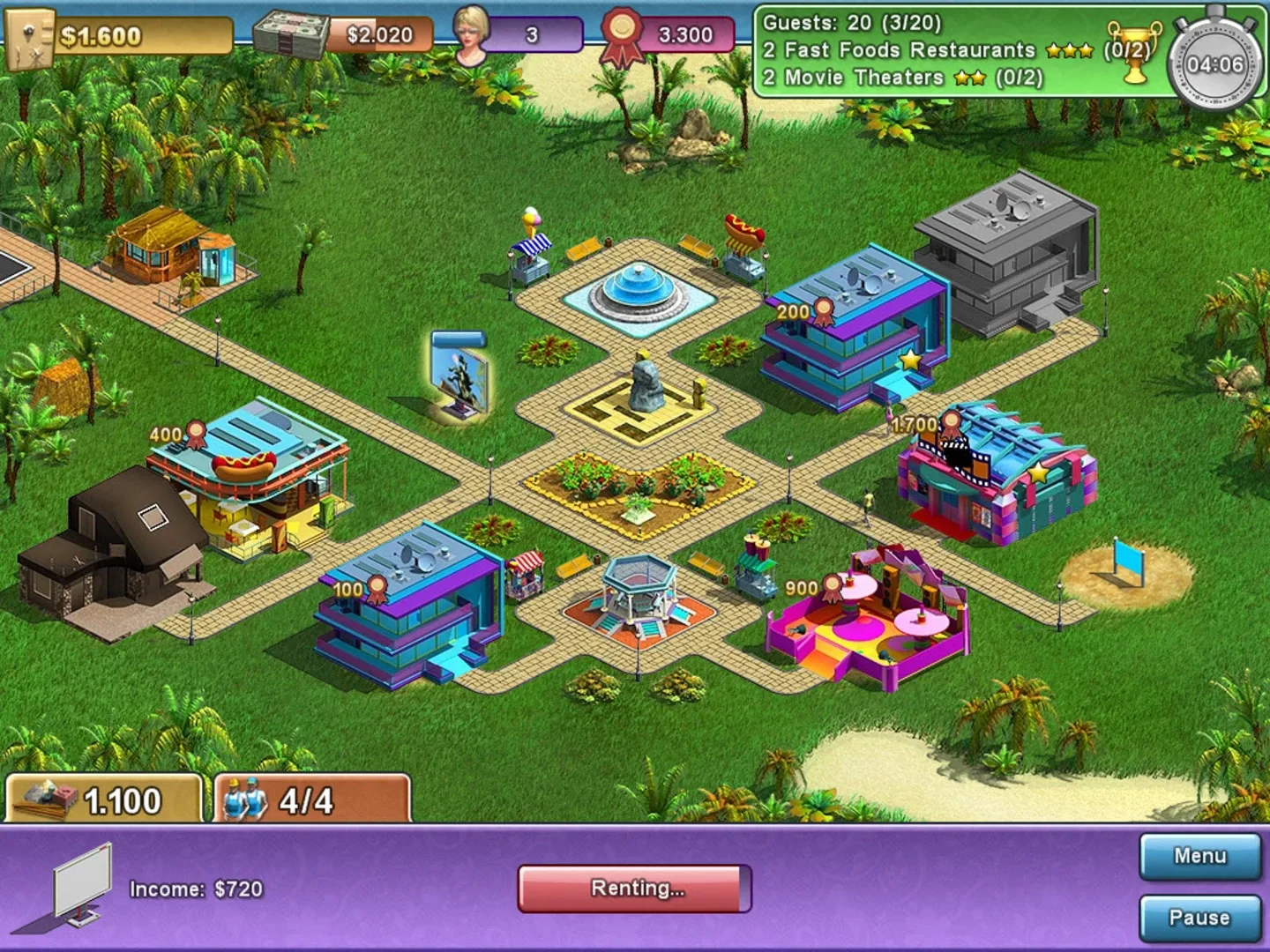 Create a world-class getaway in Summer Resort Mogul! Add movie theaters, dance clubs, swimming pools and more to entertain your guests!