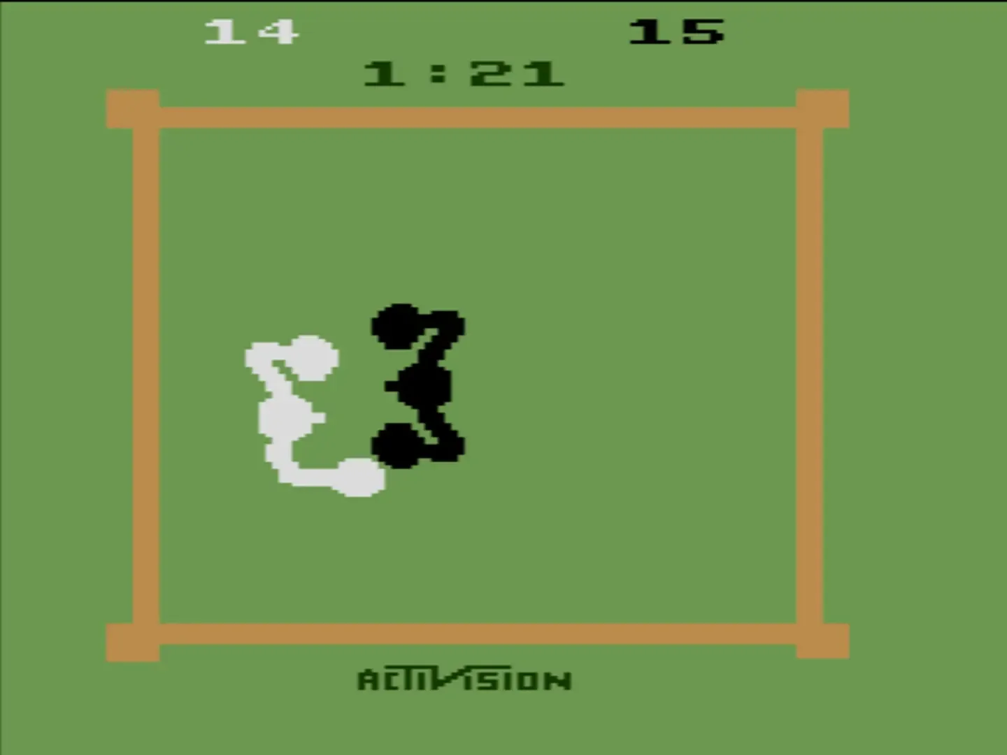Boxing is an action boxing game for one or two players which is played from an overhead point of view. The game lasts for two minutes, and the player who can earn the most points in that time wins. You earn one point for a long jab, two points for a close power punch, and if you can manage knockout it's worth one hundred points. Two difficulty levels are included which can be set individually for each player.