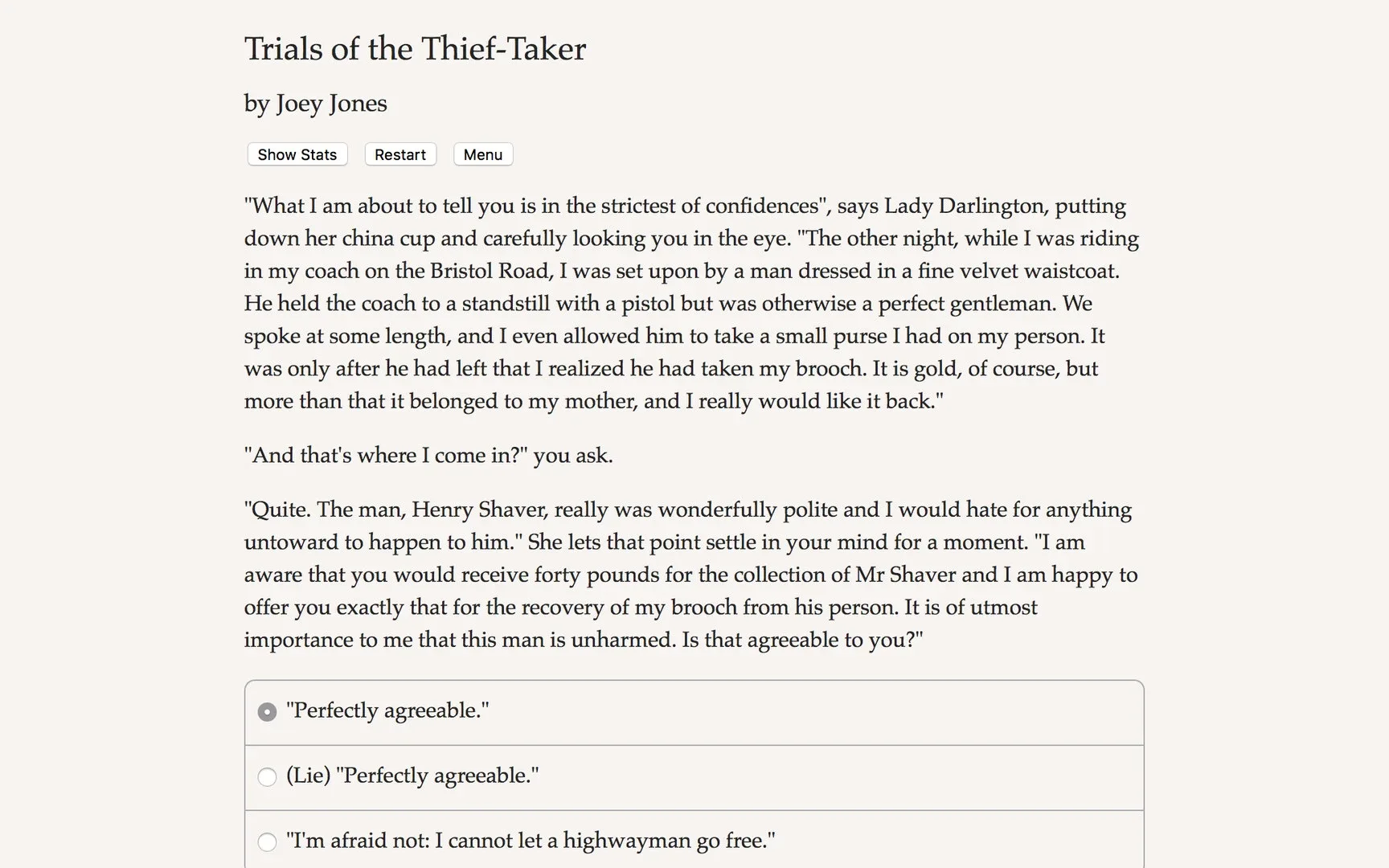 In London, 1729, before they had police, they had you: thief-takers, hunting criminals for cash! Fire a flintlock and sip gin in the age of powdered wigs. Will you grow rich catching smugglers and highwaymen, show mercy, or become a crime boss yourself?