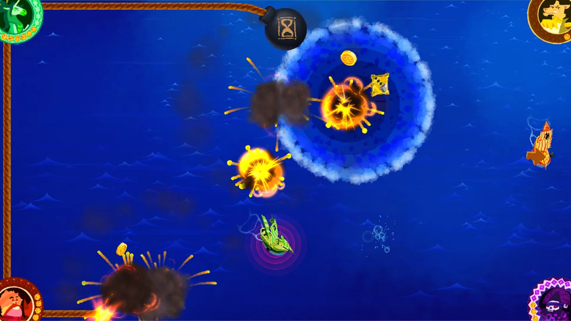 Scuffle Scoundrels is a free-for-all arcade brawl, with explosive powerups, hazardous obstacles, and four imposing captains. It is sink or be sunk in this fast paced Pirate romp! The seas are dangerous, the lesser helmsman may perish Dance the sargasso dance through the tough seaweeds! Navigate treacherous minefields, and lure your enemies to an explosive end! Ride the tide on the rim of the maelstrom, but beware the kraken's jaws! Will you play as Haima the pirate princess of a once mighty dynasty? As the mysterious Ngisi seeking powers beyond this realm? As smarmy Aldha the rich and influential pirate merchant? Or as the fierce Leowin, renegade admiral, proud and majestic? Collect chests to load your cannons with deadly powerups Explosive cannon balls tear through the hulls of rivals with a powerful shockwave! Rapidfire cannon balls send projectiles hurling through the air at a terrifying pace! Chainshot cannon balls catch enemies in a wide area and drag them to Davy Jones' locker!