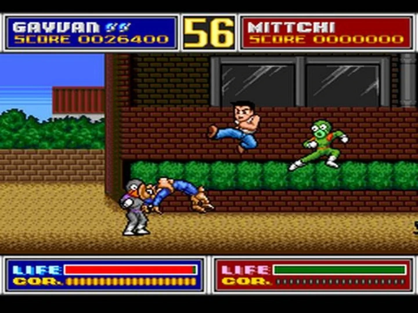 Galaxy Deka Gayvan is a brawler. Players can choose to control either of the two heroes, or both of them in a co-op mode. Like in other beat-em-up games, the player must defeat all the enemies on screen in hand-to-hand combat before being able to proceed. Both Hiro and Michiko can accumulate special energy (dropped by the enemies along with health power-ups and money) that allows them to transfer into the superheroes Gayvan and Mittchi and stay in that form until they run out of energy. The superhero forms are stronger and are able to execute special attacks. In addition, a two-player versus fighting mode is included. Players can choose either the protagonists or three enemy characters to compete against each other in one-on-one fighting.