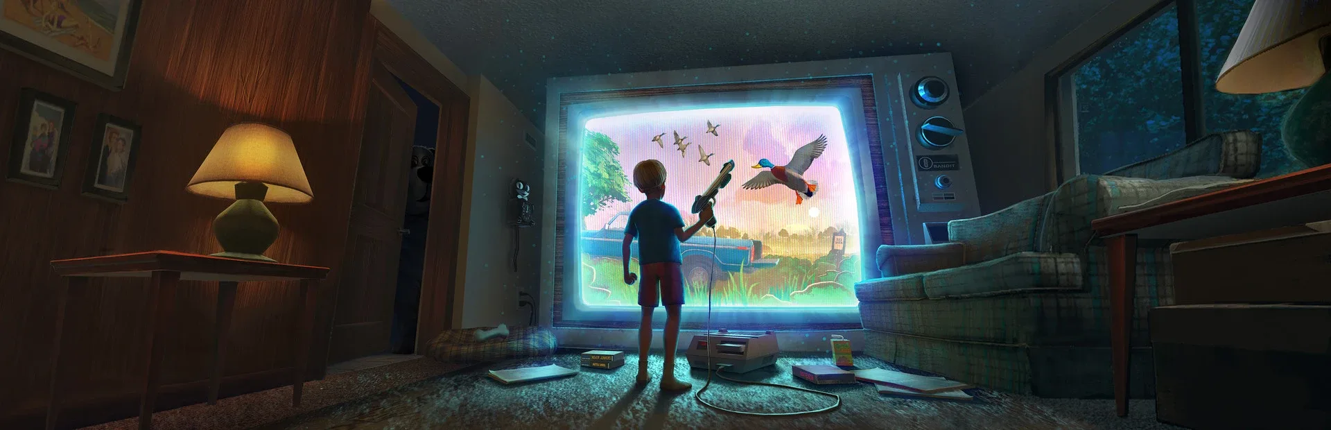 The game of your dreams just dropped, DUCK SEASON, a hunter with ridiculous graphics. Luckily, it's summer vacation and Mom just surprised you with a one day rental of it! Unfortunately, as you binge play it becomes apparent that all is not right with Duck Season...