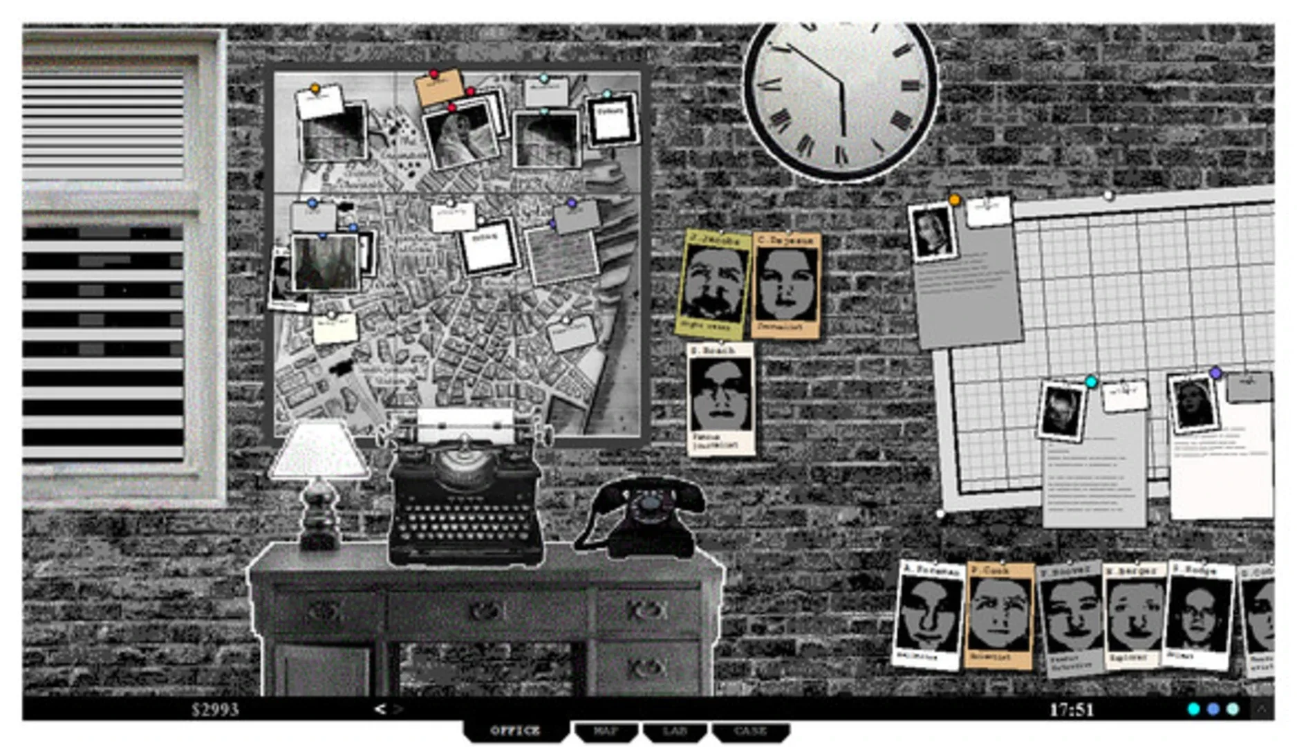 This game lets you try on the role of a Supernatural Newspaper Agency boss and editor. The world it takes place in is a dark and haunted one, with ghosts, zombies, monsters and even shapeshifting murderers, pretending to be human after they have stolen their victims' bodies or infiltrated the humanity. It was inspired heavily by the works of H.P.Lovecraft and it builds on the atmosphere of uncertainty and noir of the 1940s. Send your sextet of weathered journalists, detectives and occult specialists to investigate murder, affair, and horror in the Town. Each time, the story will be different. Sometimes, a werewolf is shredding innocent (and less innocent) victims to pieces and it is your task to unmask the creature. Other times, it will be a body stealing alien from outer space, a mummy that some misfortunate archeologist has excavated and is now haunting them. Perhaps it will be Jack the Ripper, still mysteriously alive and lurking in the streets at night. Or maybe there is a really bad big tentacled monster hidden in the cellar of the University? It is for you to find out and entertain your readers while bravely standing up against ancient evil.