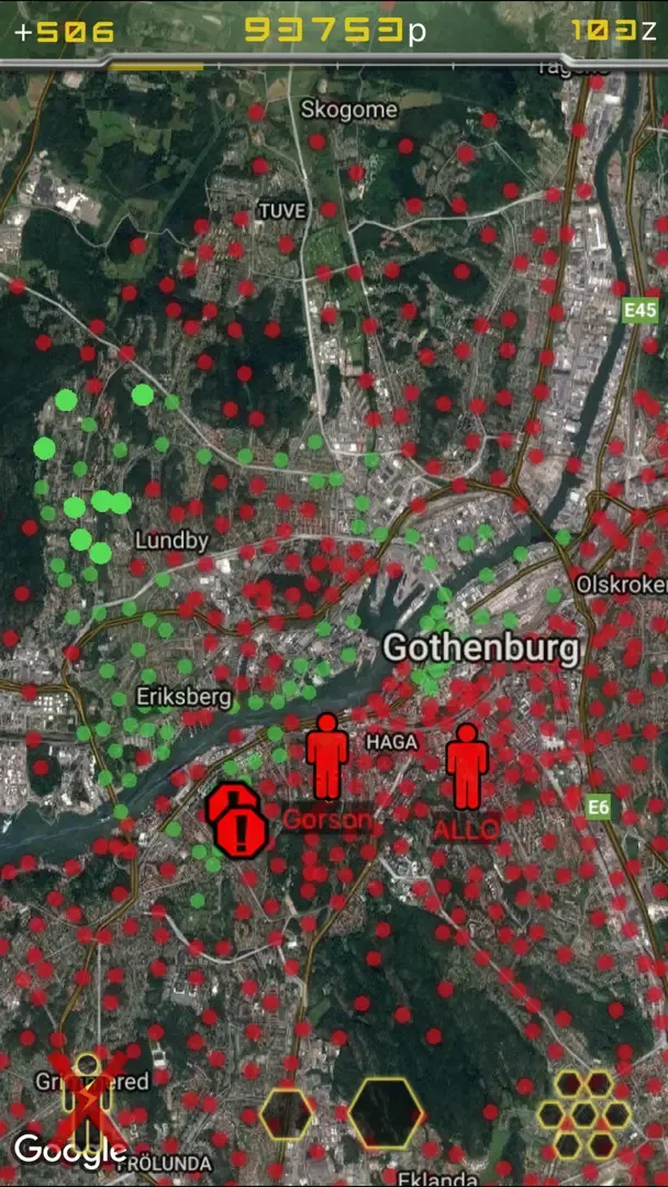 In Turf there are thousands of zones spread out in cities and villages around the world. You compete for these zones against others in order to play the game. By walking/running/biking to a zone and standing within its boundaries for a short while, you will take the zone from the previous owner and claim ownership. This action will turn the zone green and provide you with income in the form of points. On the in-game map you are not only able to see zones and zone details. You can also watch your competitors move around live, making a strategy possible. You can choose to be invisible, but while taking a zone you must be visible to others.