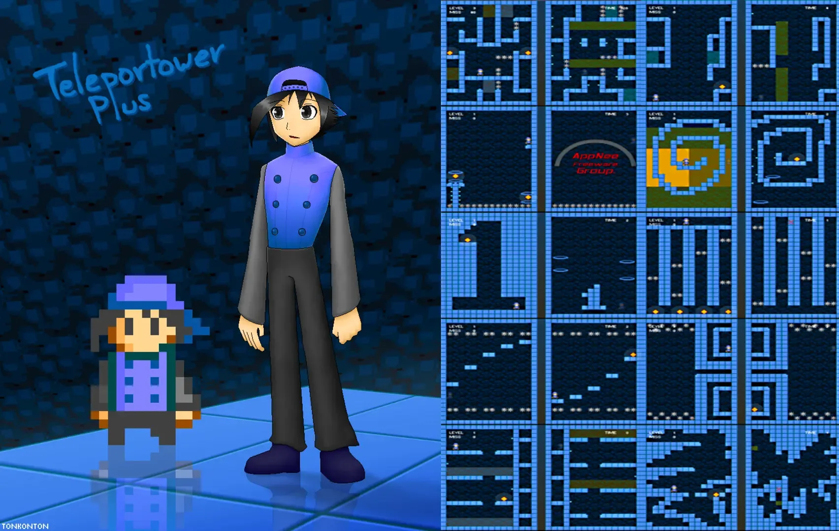 Teleportower is a platformer / puzzle game. In each stage, the protagonist can teleport between each "tower" or screen in order to progress, with the aim of getting the gold crystal. 100 levels in total, along with a level editor and many custom stages (some of which come with the download). It is free, developed by "kaho", and can be found here: /~ss1/top.htm